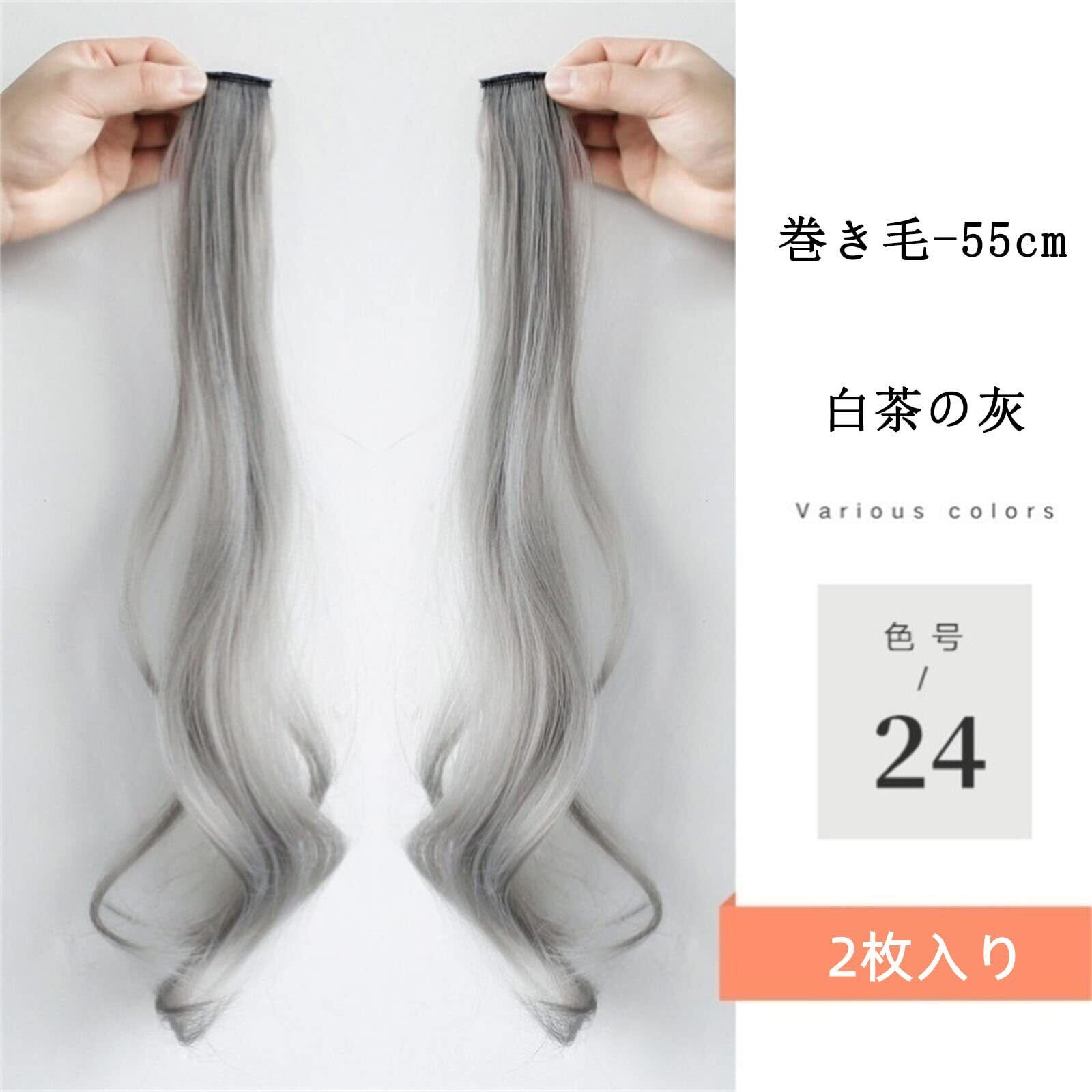 SATPULOTワンタッチエクステ巻き髪 カラフルエクステ 2本ロング ウィッグ カール グラデカラー ヘアアレンジ ヘアアクセサリー 付け毛 レディース エクステンション カラフルエクステ ウィッグ ワンタッチ クリップ つけ毛 簡単取付 コスプレ耐熱 パーティー ファッション (白茶の灰) | Bloomia