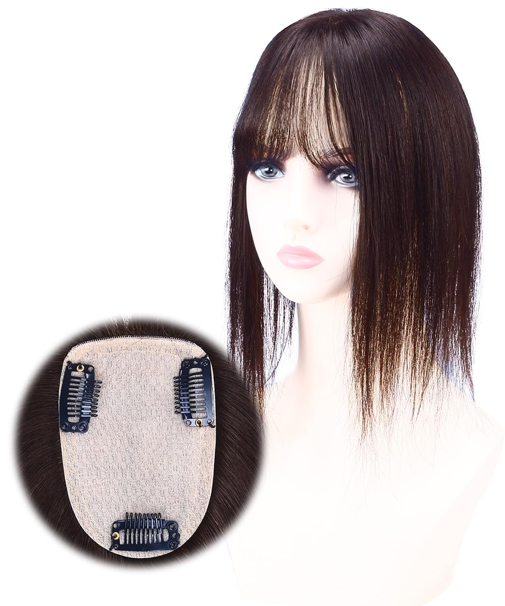 HIYE 部分ウィッグ 人毛100% リアル 人工皮膚 自然 軽量 増毛 ウィッグ つむじ付き トップカバー 白髪 薄毛隠し 女性 ヘアピース 円形脱毛 ハゲ隠し 医療用ウィッグ 黒髪 横7cm縦10cm パッツンバング (30CM 栗色) | Bloomia