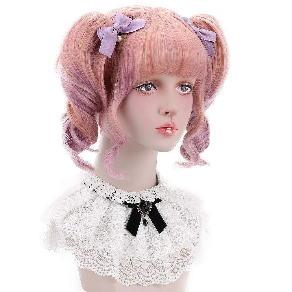 Free Beauty ウィッグツインテールコスプレ用ロリータ原宿風変装ピンクポニーテールパープルコスチューム小物ショートポニーテール