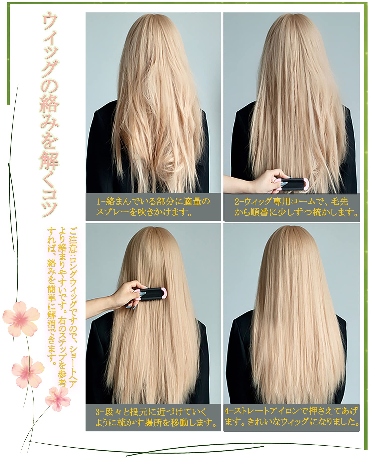 素材構成: 約180度耐熱ファイバー、ドライヤー、コテ、アイロン等で好みの髪型に整えることができます。