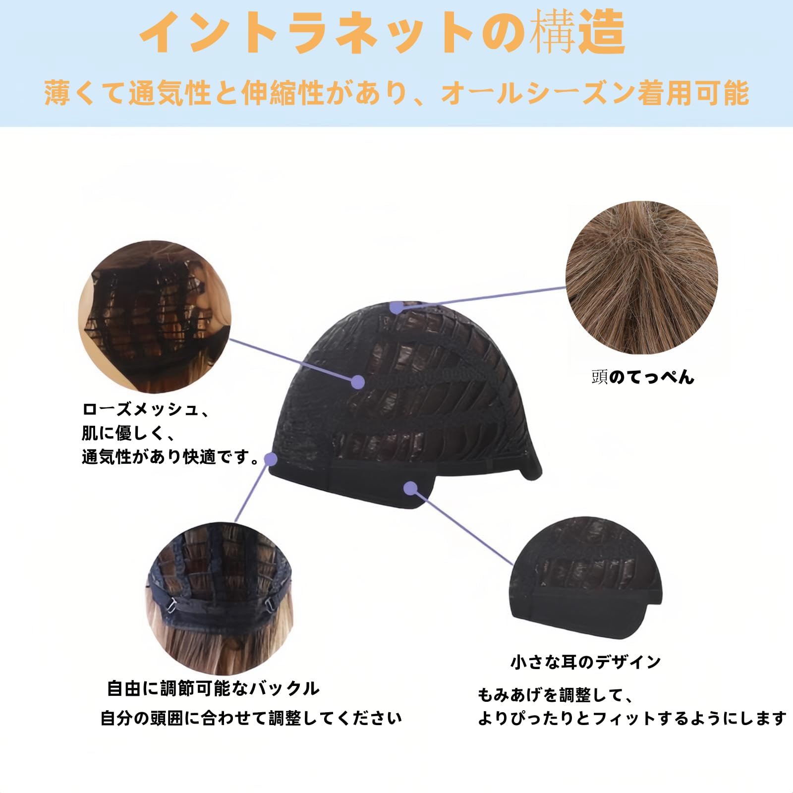 【上質な素材】:ウィッグは上質な耐熱繊維シルクを採用し、193℃まで耐熱、アイロンやドライヤーでスタイリング可能、ヘアスタイルのトップは高いシミュレーション頭皮で設計し、自然でリアル、高い通気性、着心地が良いです。