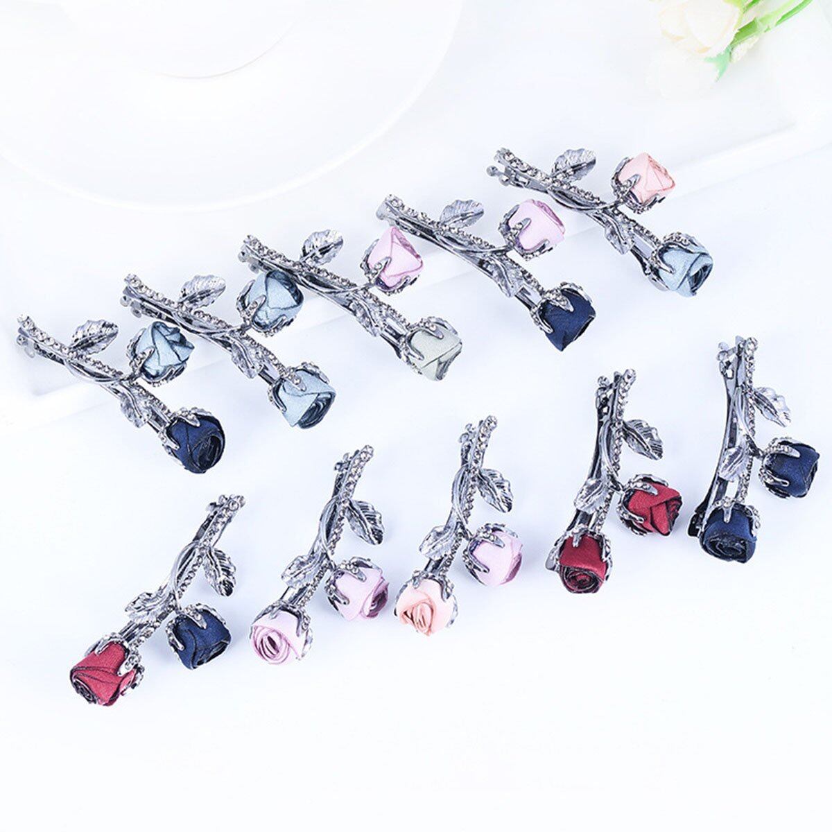 バラの花のラインストーンヘアピン、あらゆる髪の色に最適。