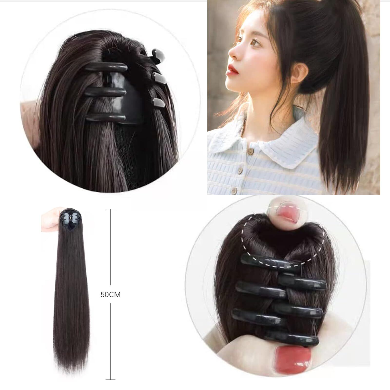 HAPVITAL レディース ポニーテールウィッグ 自然 クリップ式 ロング ストレート ヘア エクステ ポイントウィッグ 人気 結婚式 七五三 成人式 卒業式 和装 着物 浴衣 (褐色がかった黒) | Bloomia