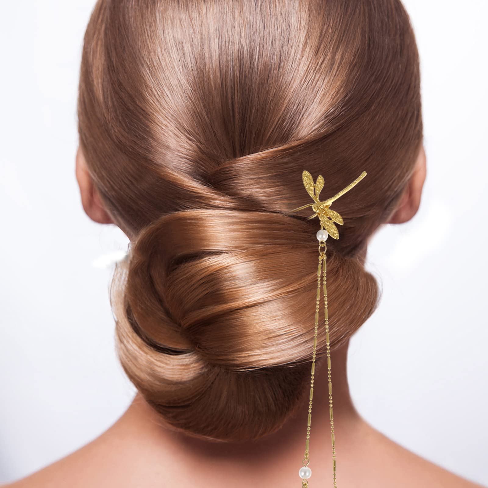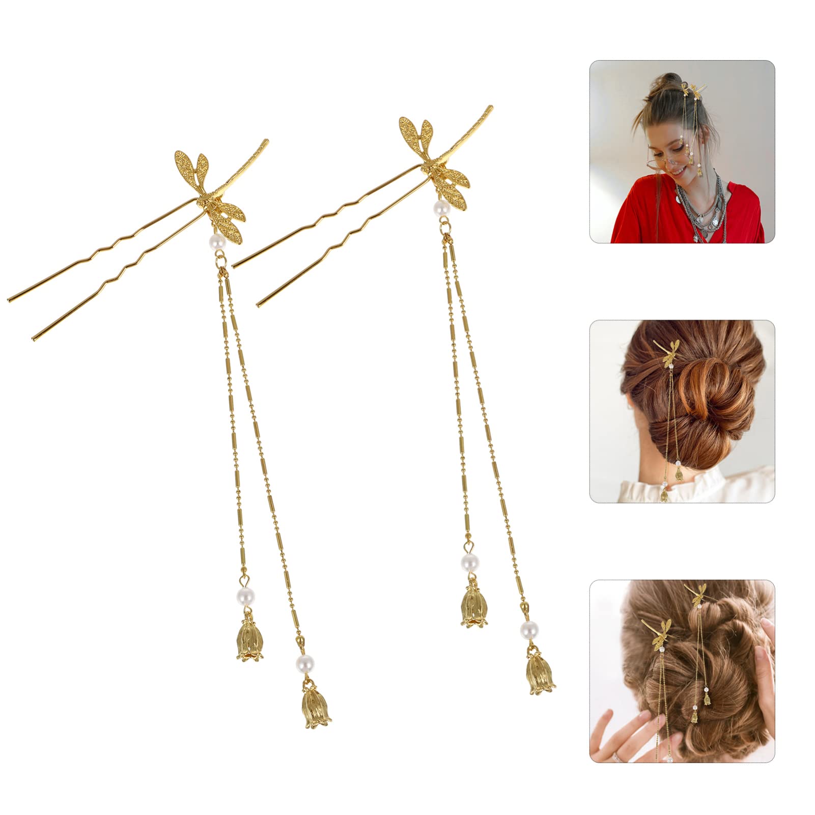 Frcolor 2本 簪 かんざし 揺れる かんざし ゴールド シンプル 和風 ヘアスティック 和装 浴衣 タッセル 髪飾り トンボ 成人式 花嫁 花火大会 髪飾り ヘアピン ヘアアクセサリー 女の子 大人 結婚式 パーティー ギフト | Bloomia