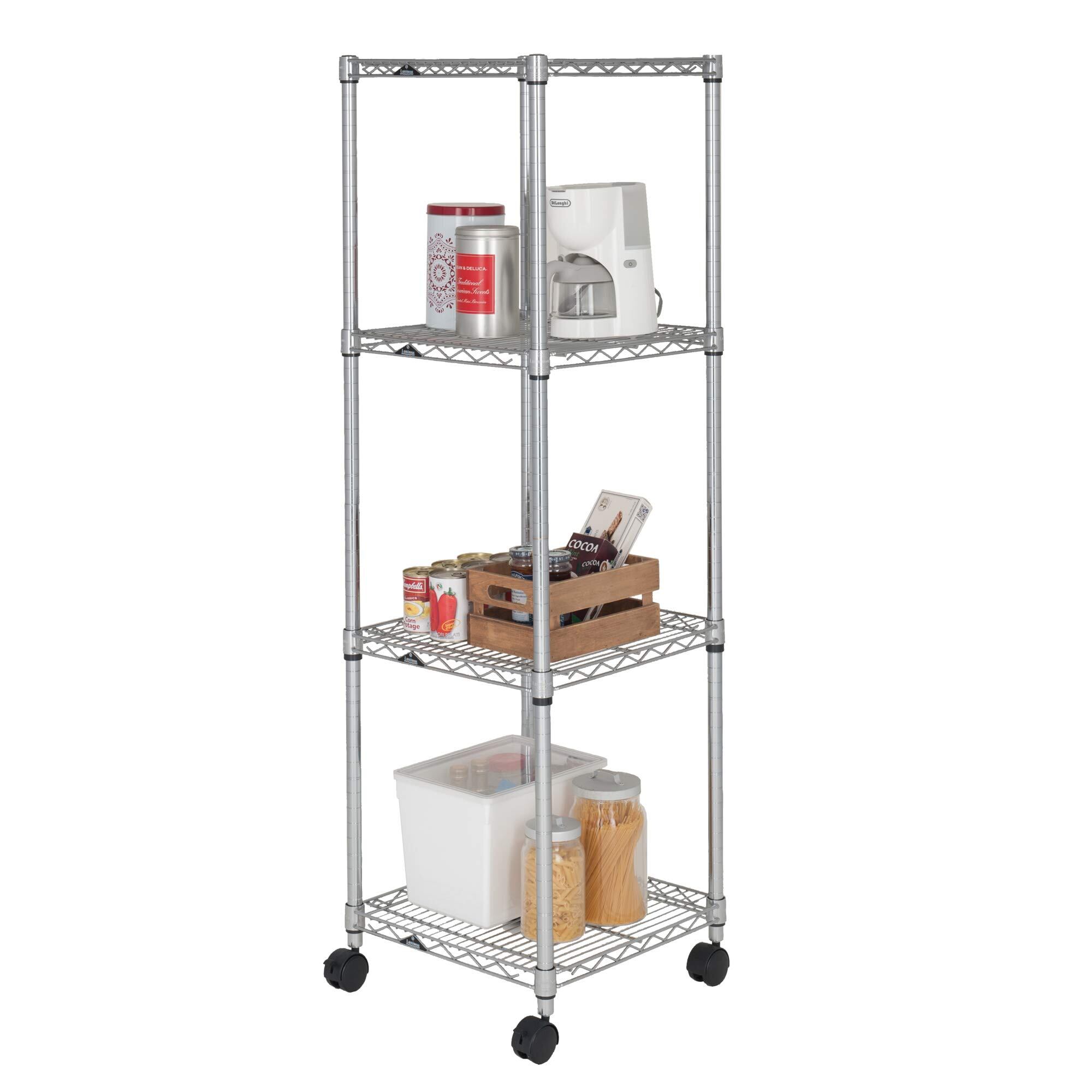 ドウシシャ ルミナス レギュラー ラック スチールラック 収納棚 幅45 4段 隙間収納 防錆加工 業務用 耐荷重250kg (棚板1枚あたり) キャスター付き 豊富なカスタムパーツ ポール径25mm 幅46×奥行46×高さ156.5cm NLH4615-4 | Bloomia