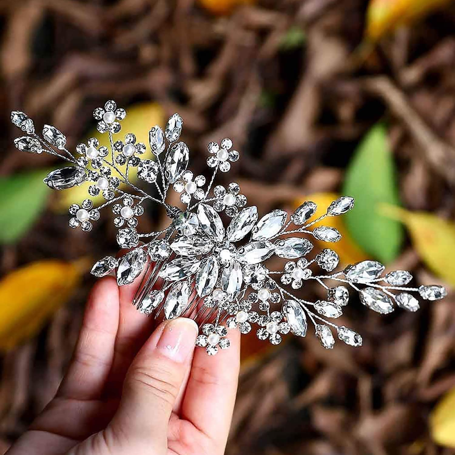 ヘアアクセサリー ヘッドドレス ブライダル 髪留め ウエディング 髪飾り クリップ 結婚式 卒業式 入学式 ウェディング パーティー ダンス 和装 大人 手作り レディース (ホワイト) | Bloomia