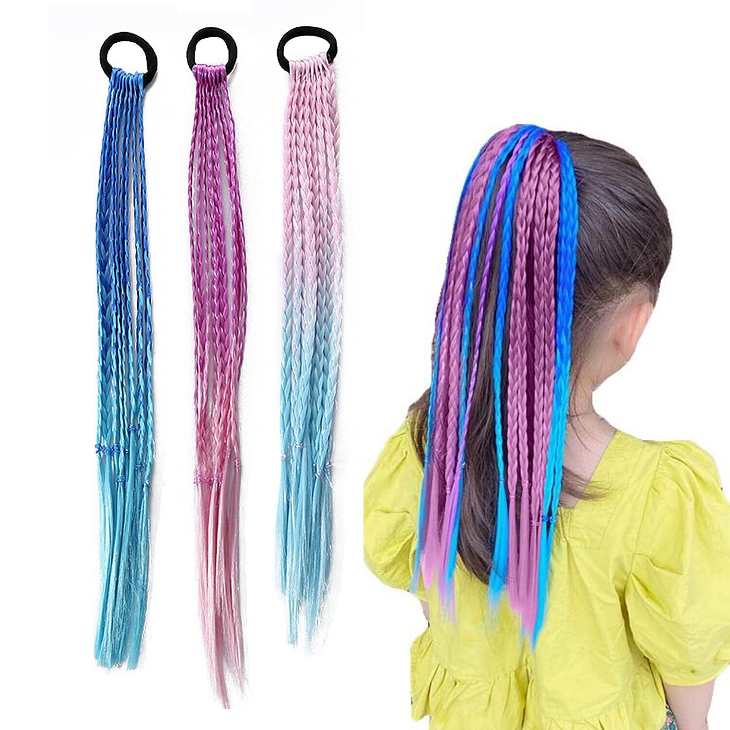Coollooda ヘアエクステ 三つ編み【3本】 編み込み ハロウィン コスチューム キッズ ダンス イベント グラデーションカラーエクステ キッ エクステンション ヘアエクステ | Bloomia