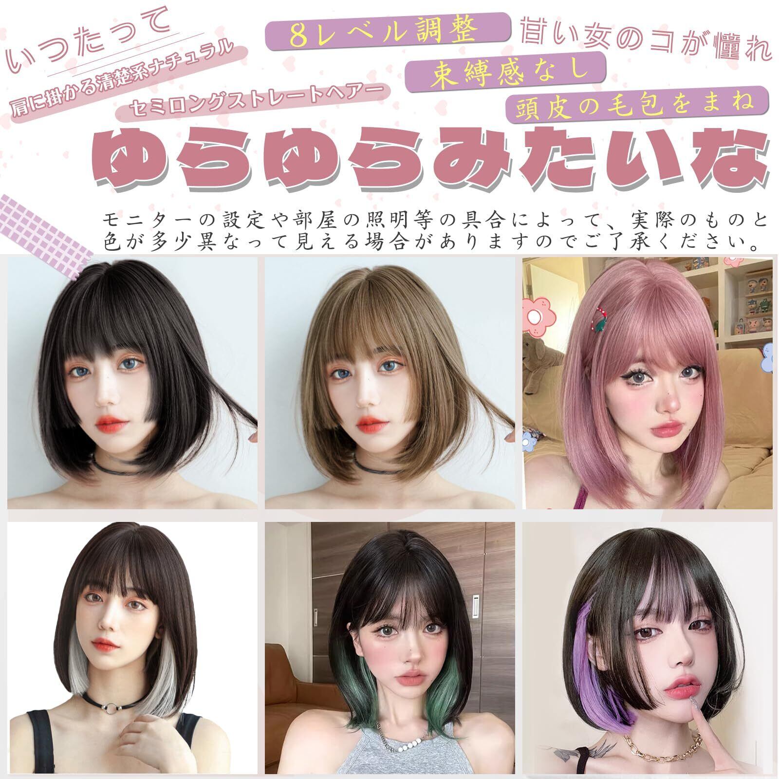 BARSDAR ウィッグ ボブ ショート レディース かつら Bob wig フルウィッグ 耐熱 自然 小颜劾果 原宿 ロリータ 女性用 かつら ぱっつん かわいい クールブラウン | Bloomia