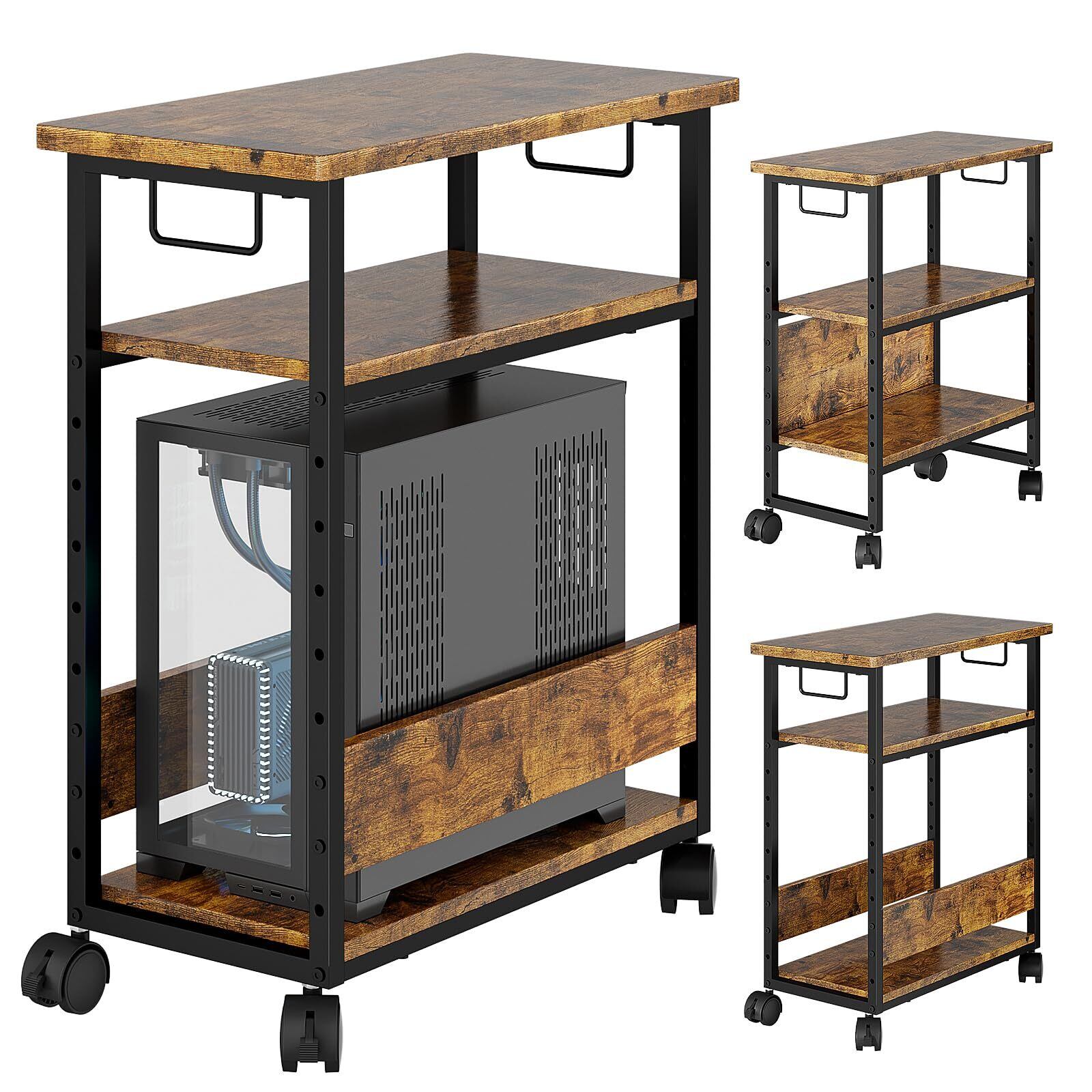 MIYOKI パソコンワゴン PCワゴン 複合機ラック CPUワゴン キャスター付き デスクワゴン 棚板高さ調節可能 パソコン収納 木製 デスクサイドワゴン 収納棚 ストッパー付き 移動便利 幅60×奥行30×高さ70cm (ビンテージ) | Bloomia