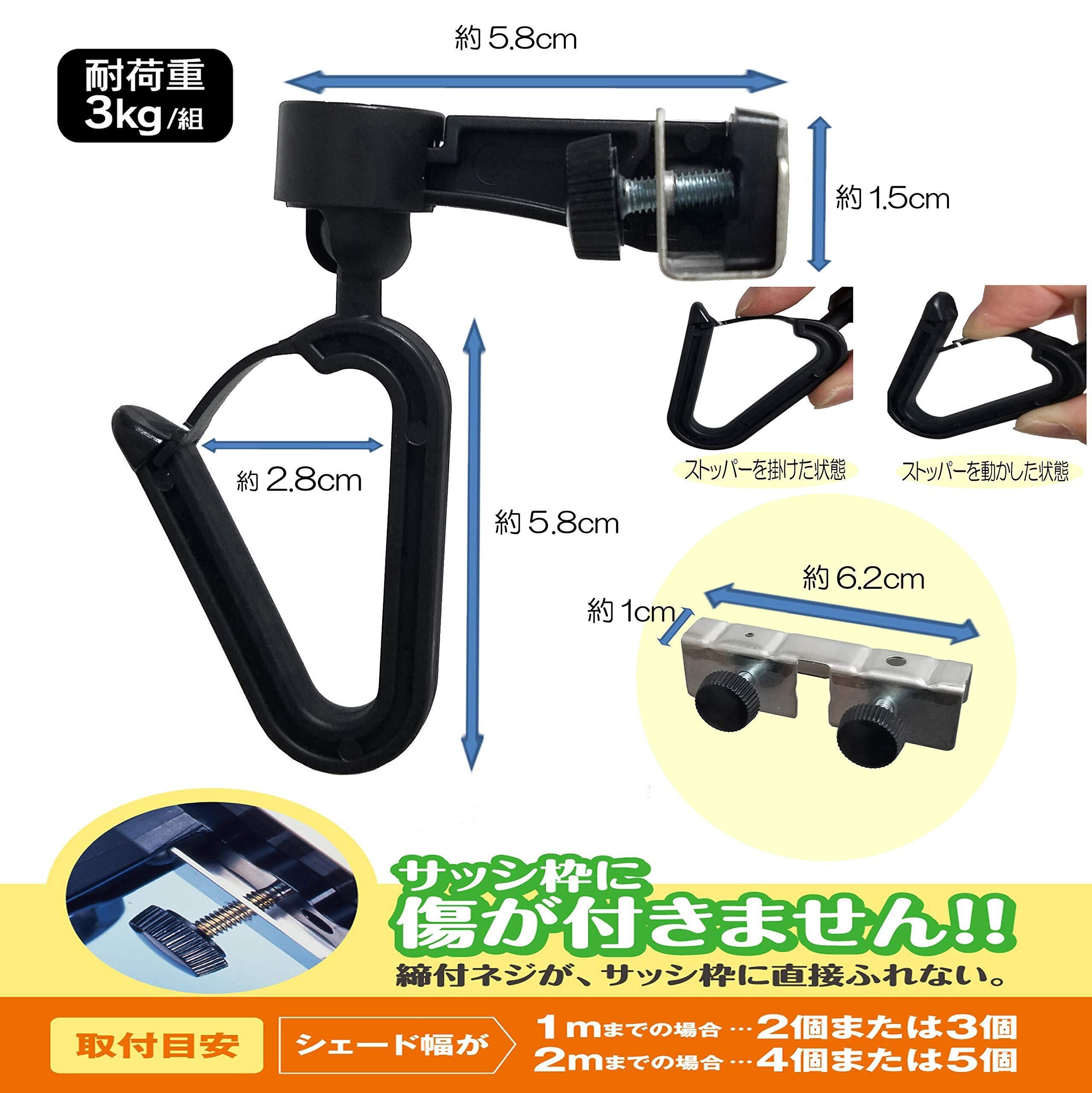 ●ほとんどのサッシに取り付け可能ですが、一部のサッシ枠で取り付け部5ミリ以下、サッシの厚み5ミリ以上サッシ枠と戸の隙間1ミリ以下の場合は、取り付け出来ません。●耐荷重以上の物や、貴重品は掛けないでください。●風の強い日には、シェードを外してください。サッシ枠が曲がる恐れがあります。