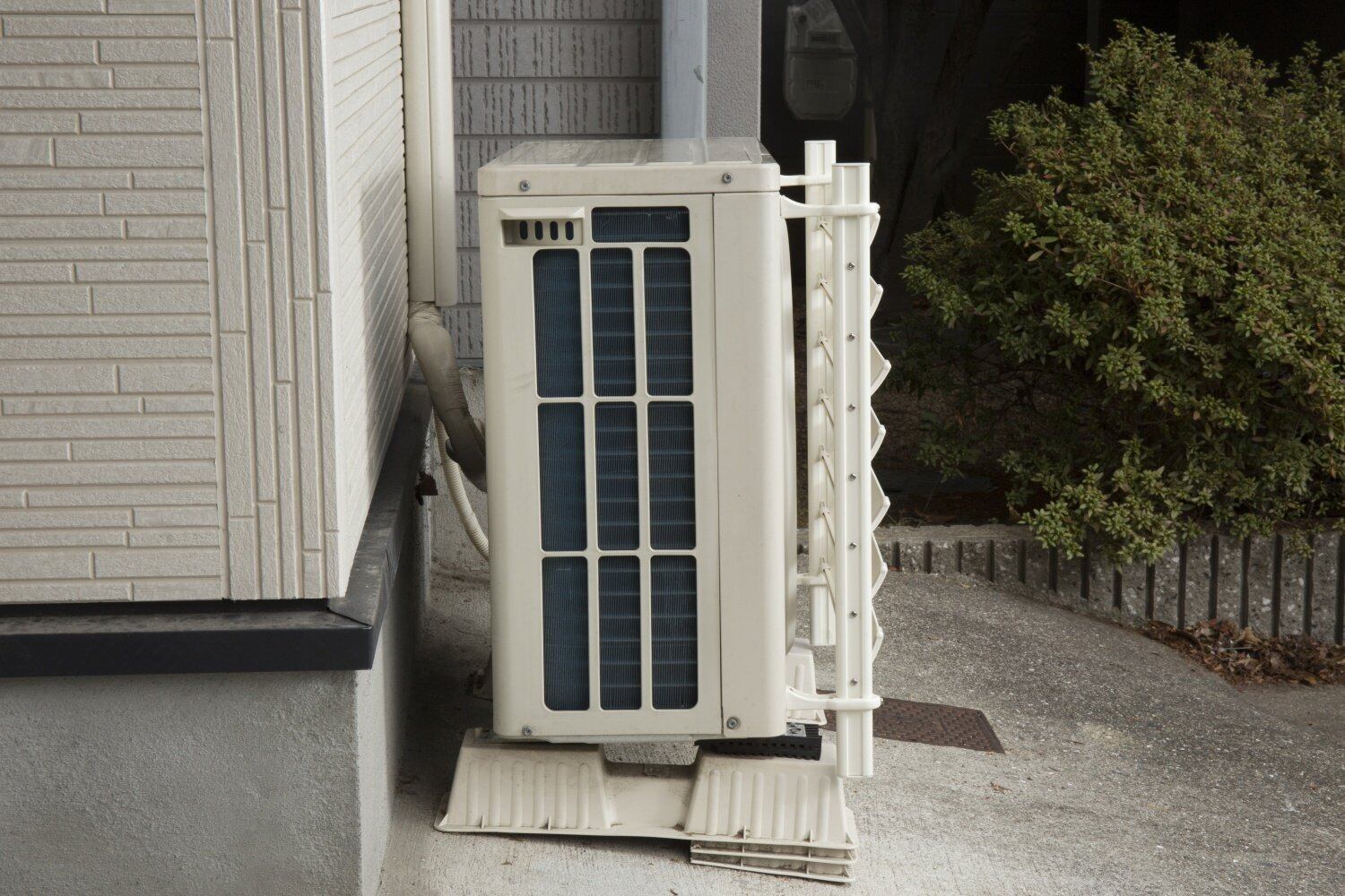 取付場所の選定:室外機内部の配線や基盤などに干渉・損傷の恐れが無いことを確認してください。台座取付面が平坦で穴の開いていないことを確認してください。取付に必要な寸法が確認してください。