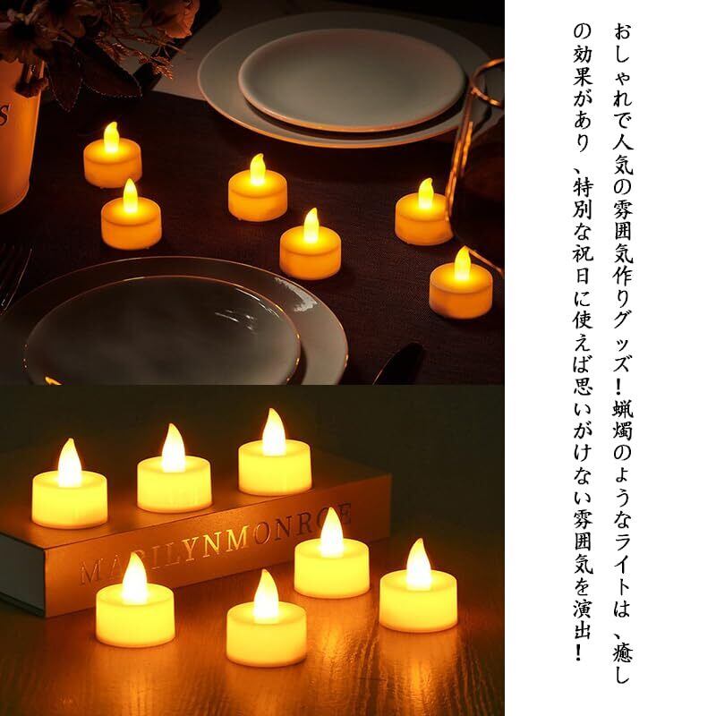 wowjimi LEDキャンドルライト 24個入り ろうそく灯 電池式 飾り ろうそく おしゃれ 癒し インテリアライト インテリア装飾 精緻 乙女心 萌 人気 写真 クリスマス クリスマス飾り 新年 結婚式 誕生日 纪念日 パーティー 祝日 (円形) | Bloomia