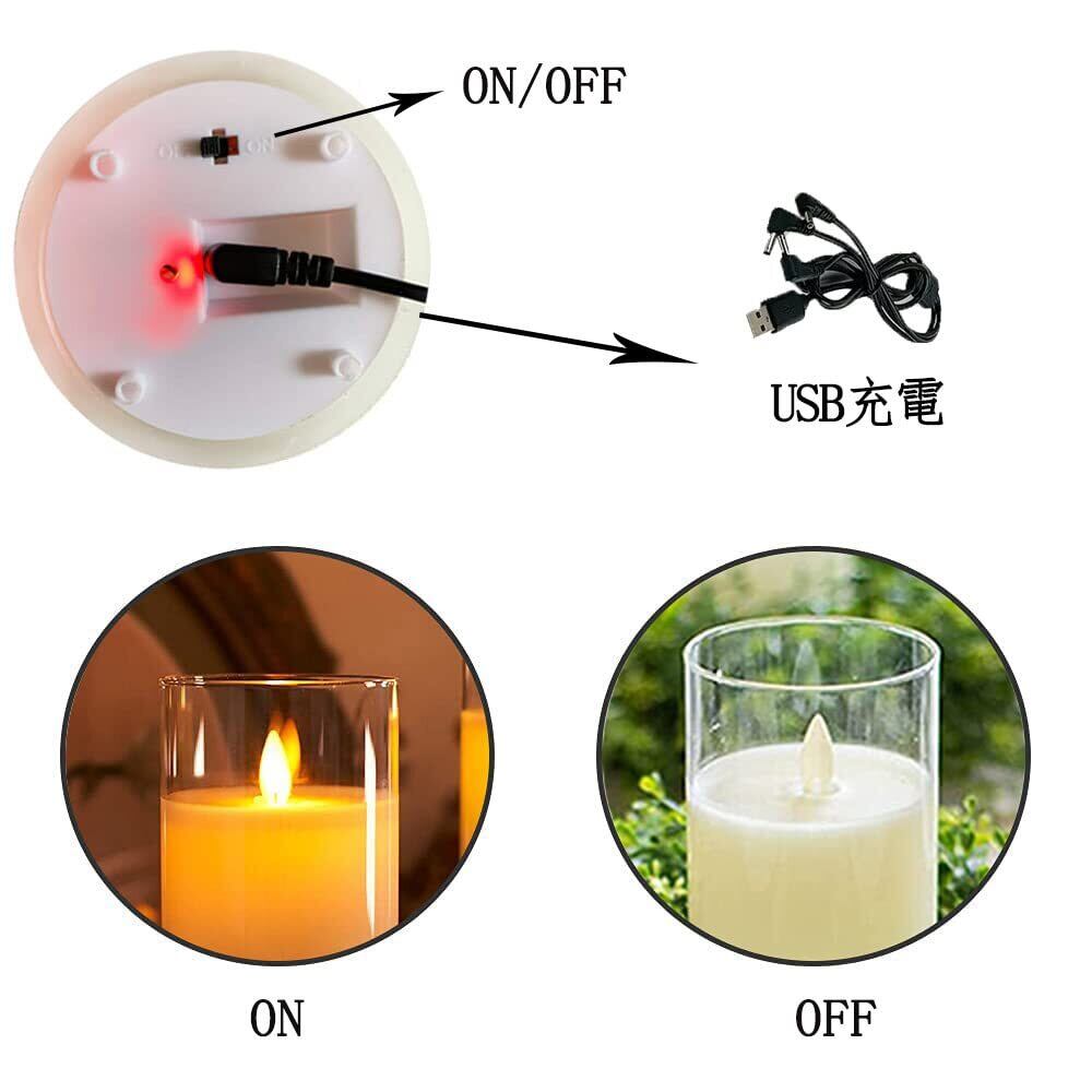 AnnTec LEDキャンドルライト クリアガラスホワイト ロウソク 本物の炎のようにゆらめく3点セット 暖色光 火を使わない ゆらゆら揺れる 安全 省エネ 専用リモコン付き 明るさ調整 USB充電式 LEDキャンドル | Bloomia
