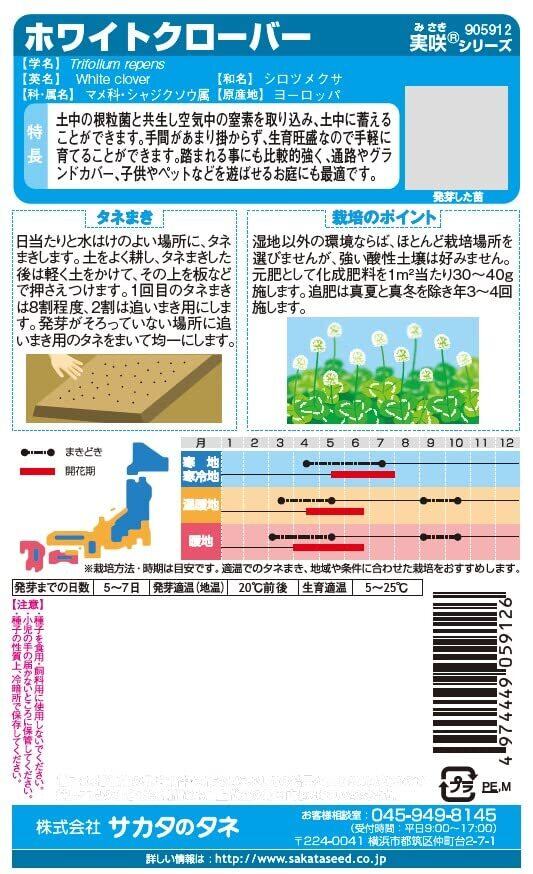 土中の根粒菌と共生し空気中の窒素を取り込み、土中に蓄えることができます。手間があまり掛からず、生育旺盛なので手軽に育てることができます。踏まれる事にも比較的強く、通路やグランドカバー、子供やペットなどを遊ばせるお庭にも最適です。