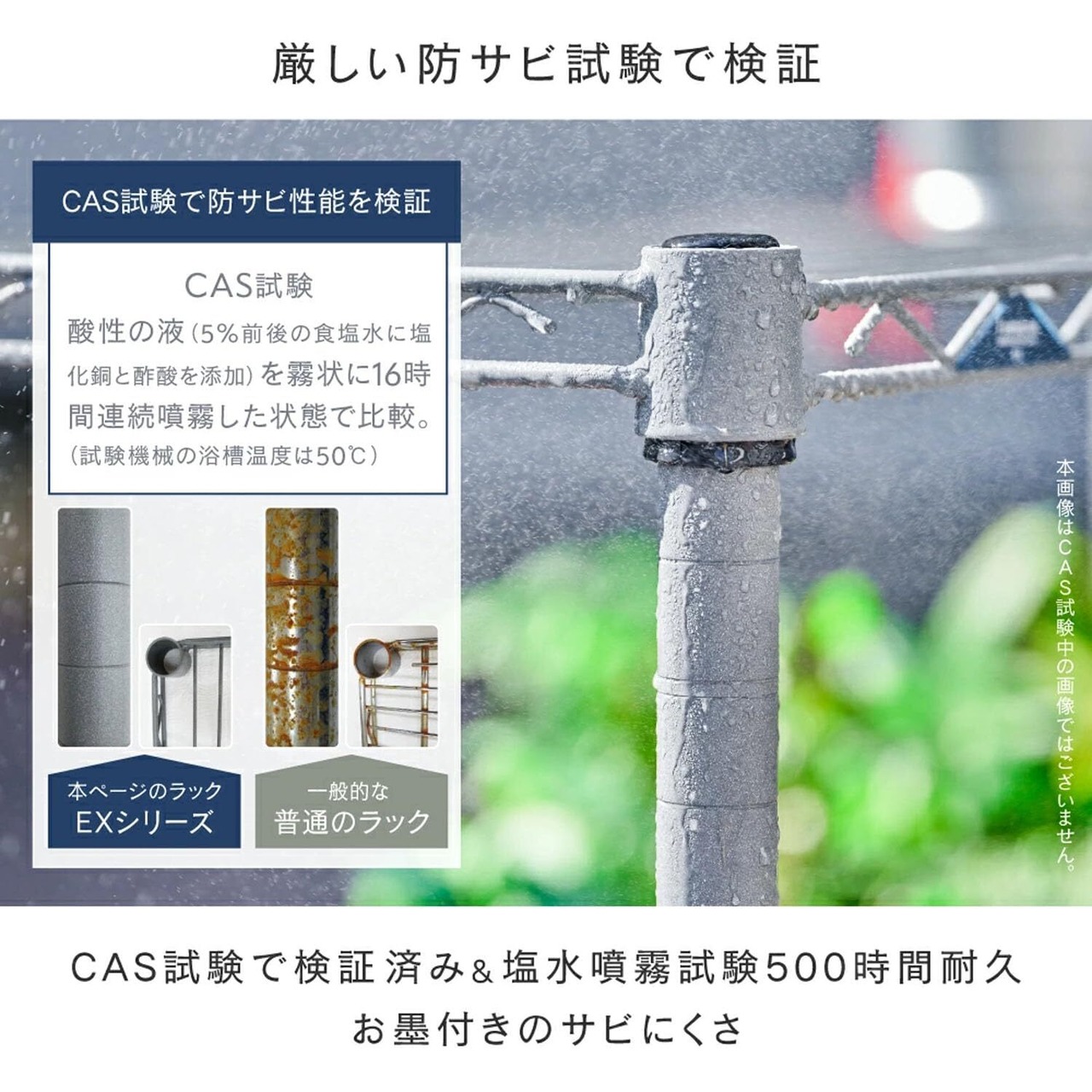 優れた耐久性:棚板やポールにはエポキシポリエステル樹脂塗装が施されており、耐久性と防錆性に優れています。