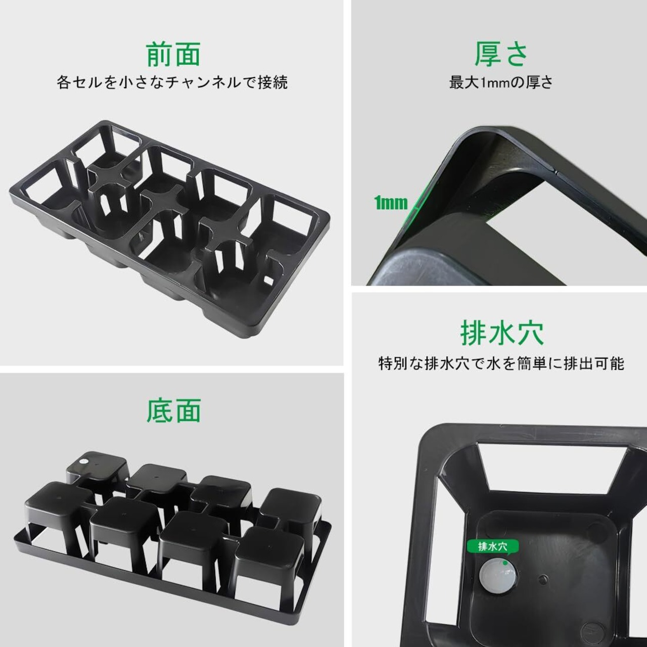 耐久性に優れた高品質素材:この育苗トレーは厚みのある高品質PP素材を採用しており、軽量でありながら耐久性抜群で、満載の植物をしっかり支えます。複数のシーズンにわたり繰り返し使用可能です。