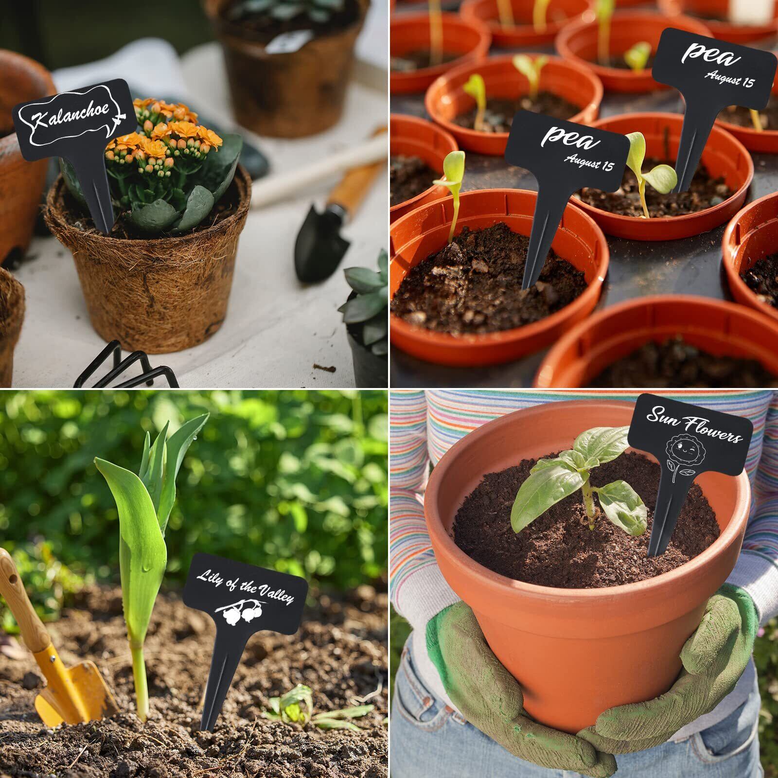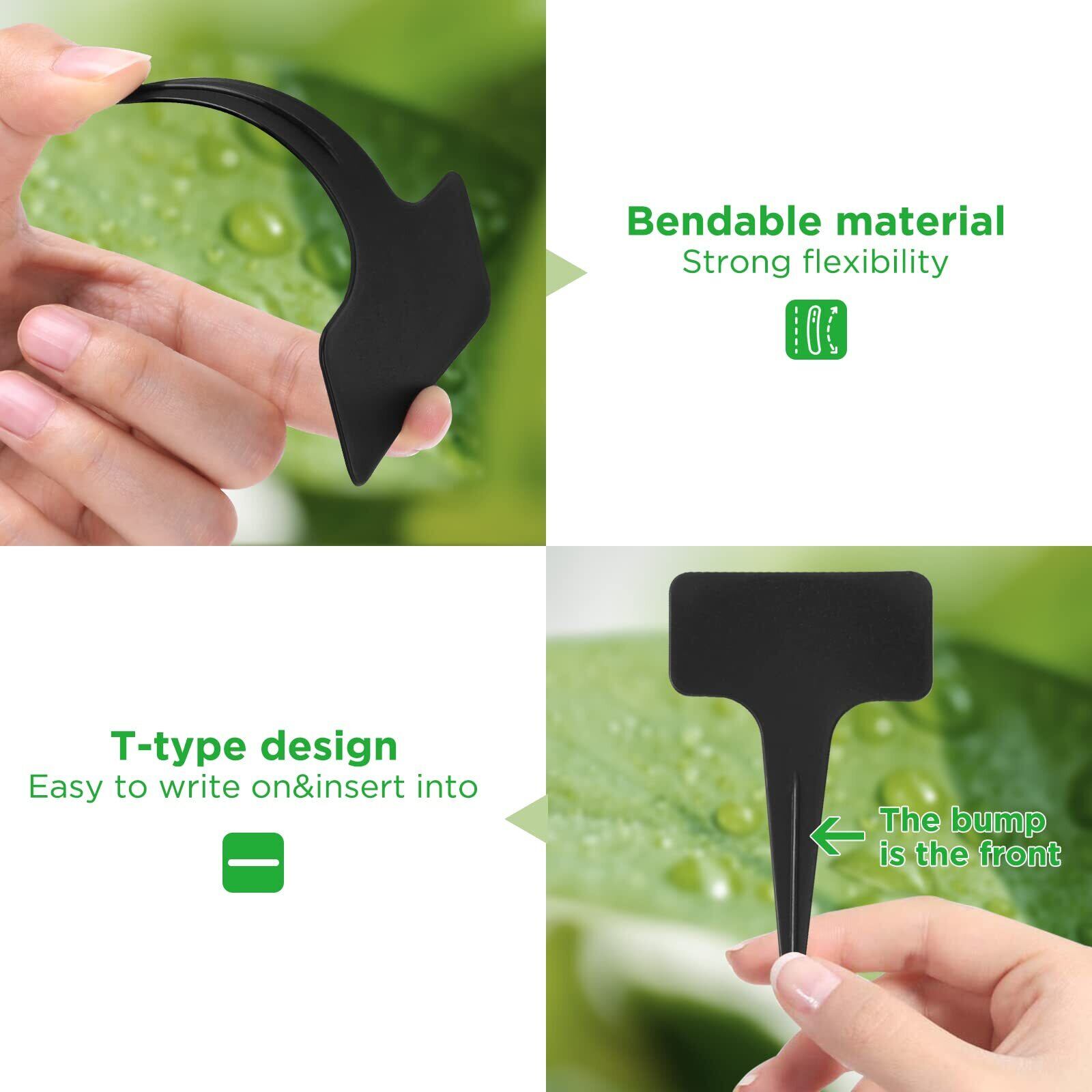 GeeRic 100枚入り 園芸ラベル T型 植物タグ 盆栽タグ 花壇 鉢植 ガーデニング看板 再使用可能 園芸用品 黒 マークペン付き