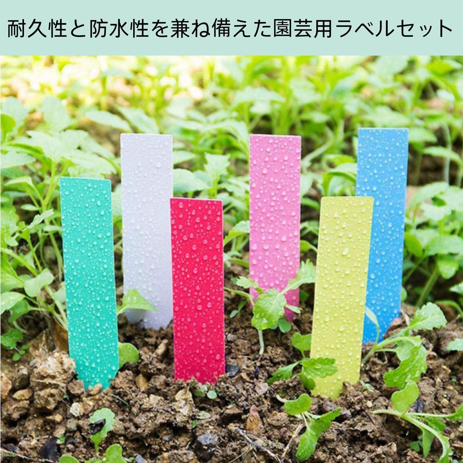 耐久性と防水性を兼ね備えた園芸用ラベルセット。6色のラベルが合計600枚入り。赤、黄、青、緑、白、ピンク各100枚。