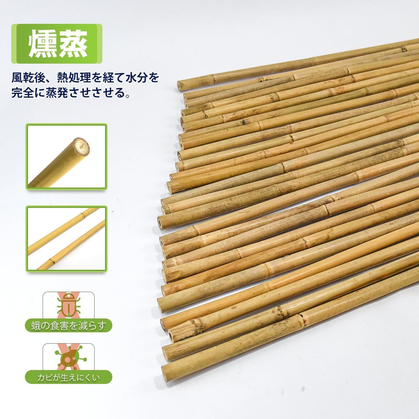品質:Jollybowerの園芸 支柱(支柱用竹)は、100% 天然竹で作られております。 良質を確保するために、すべて手作業で選択されています。 また、天然でリサイクル可能な素材で作られており、無毒無害ですので、安心にご利用いただけます。