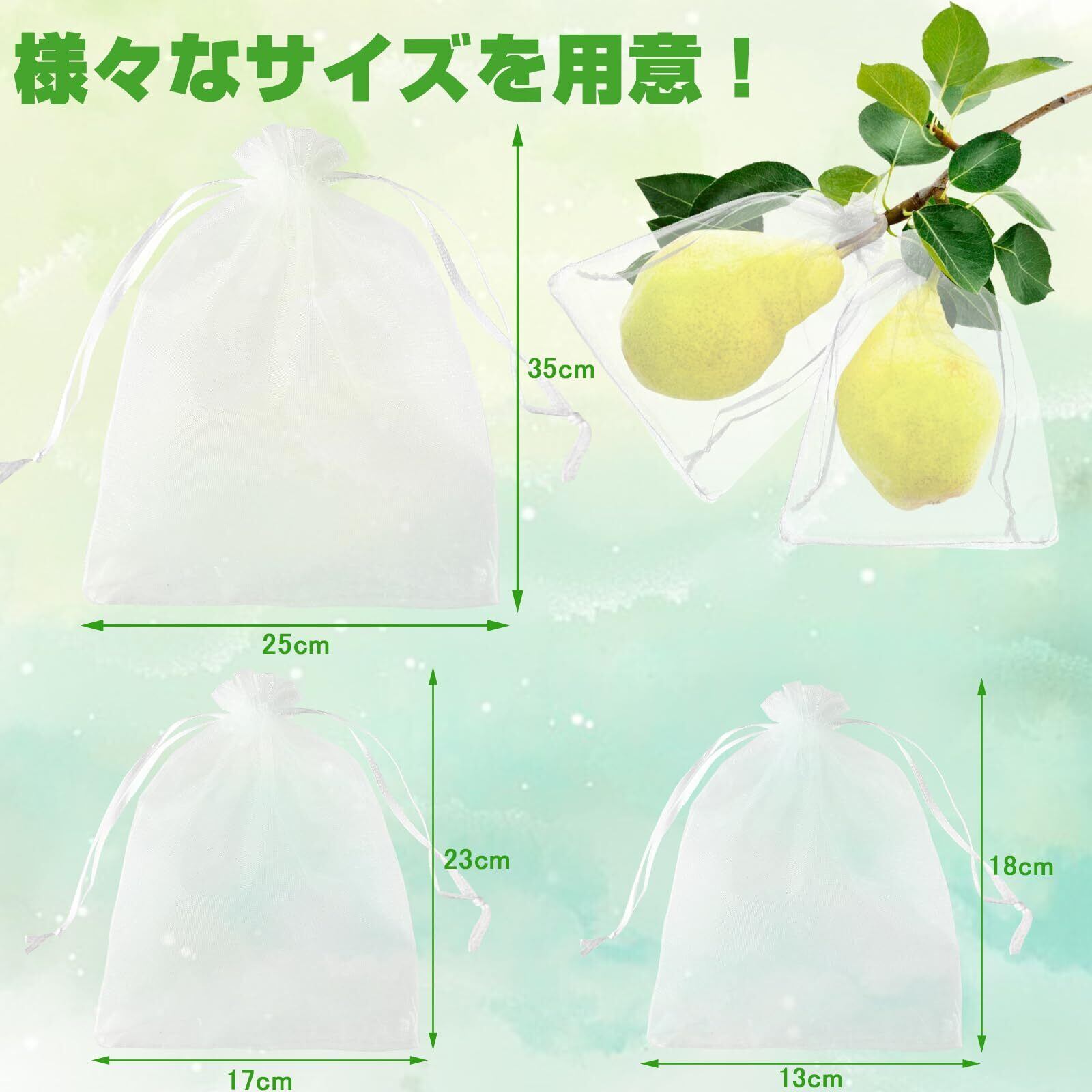 【耐久性】果樹袋はオーガンジー素材を採用し、耐腐食性に優れ、破れにくいです。メッシュ袋のため、光透過性も通気性も良く、果物の発育と成長にあまり影響を与えません。