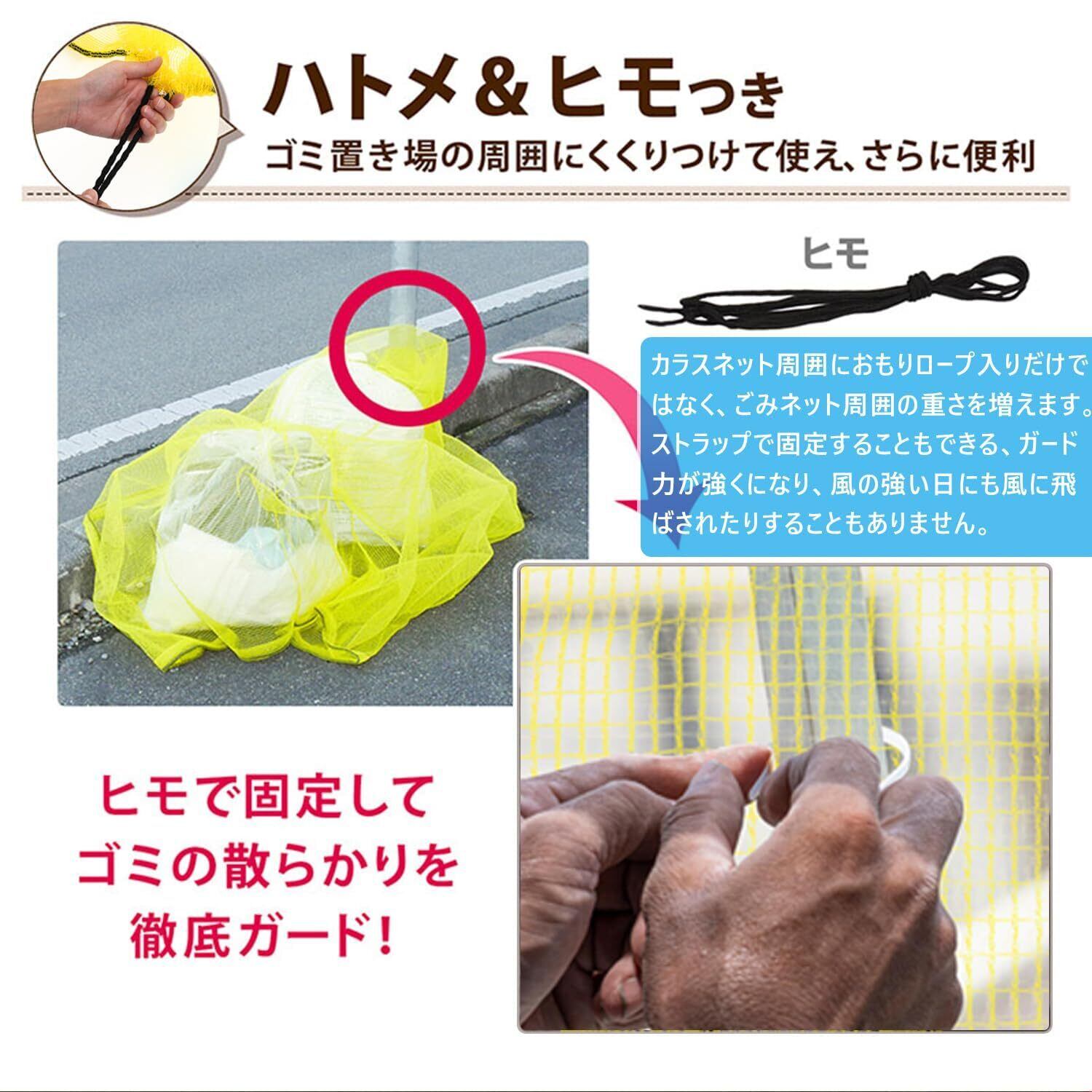 1. **【安心の屋外使用が可能】**この[カラスよけネット]は、1.5m×1.5mのサイズで、45Lのゴミ袋約4個分をしっかり収納できます!屋外のゴミを守るために設計されたこのネットは、カラスや鳥類、さらには犬やネコからも大切なゴミをしっかりガードし、安心してご使用いただけます。
