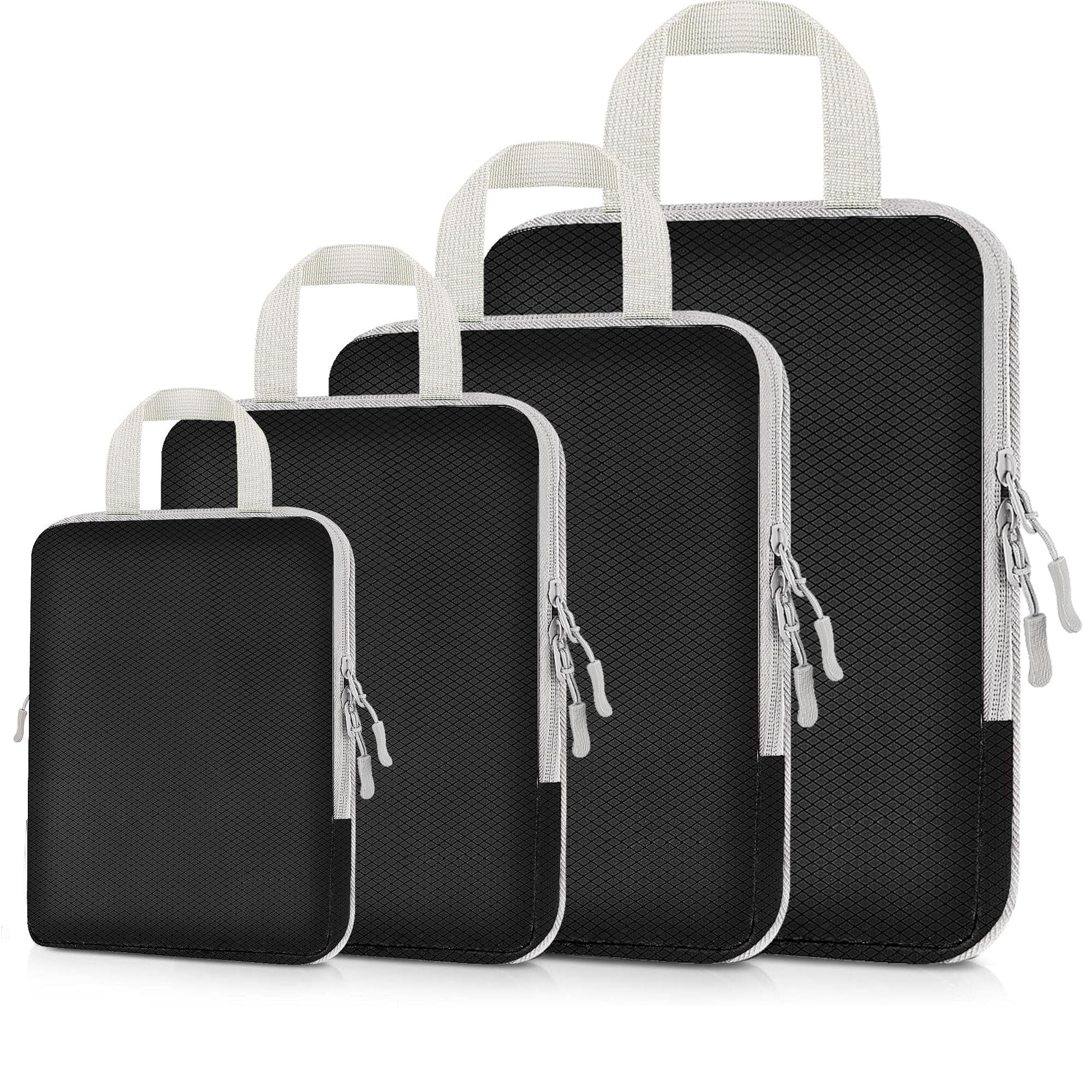 旅行用圧縮袋 【2024年最新型】トラベルポーチ 4点セット 旅行用圧縮オーガナイザー 圧縮で衣類スペース約60%節約 撥水加工 衣類仕分け 旅行、出張、温泉、海外研修に、超軽量で便利なアイテム (ブラック) | Bloomia