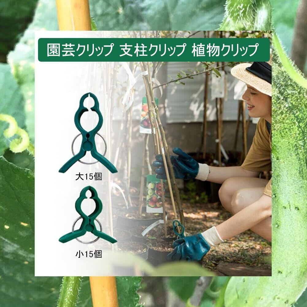 園芸クリップ 大小各15個セット 誘引クリップ 植物クリップ 園芸用支柱クリップ 再利用可能 強力なクランプ力 固定クリップ 茎の支柱止めに 誘引作業 ガーデニング 園芸用 農業用