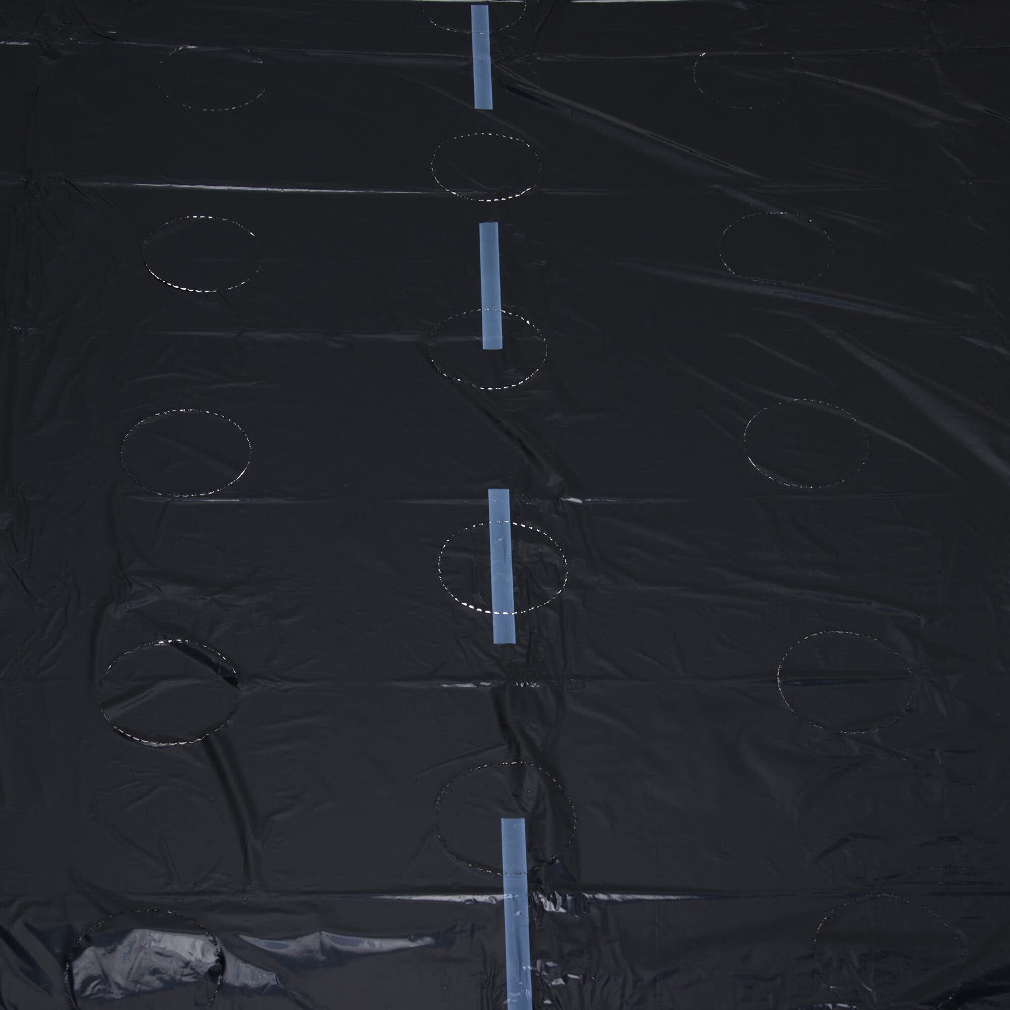 露地栽培の定番、黒マルチ。あらかじめミシン目の入った穴が用意してあるフリータイプマルチです。カッターが無くても、栽培する作物に合わせた位置に簡単に穴をあけて播種、定植する事ができます。あらかじめ15cm間隔で3列(9315チドリに相当)・直径45mmの穴が開けられるようにミシン目加工してあります。必要な場所のミシン目をむしって、穴をあけてご使用ください。