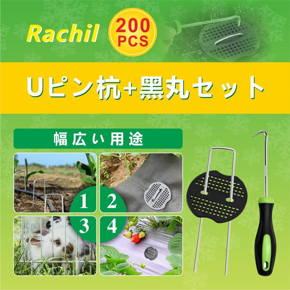 【材質とサイズ】ピン:錆防止亜鉛メッキスチール製 黒丸:ポリエチレン製 サイズ:15x3x15cm 数量:200本ピン+200本黒丸+ガーデニング用手袋