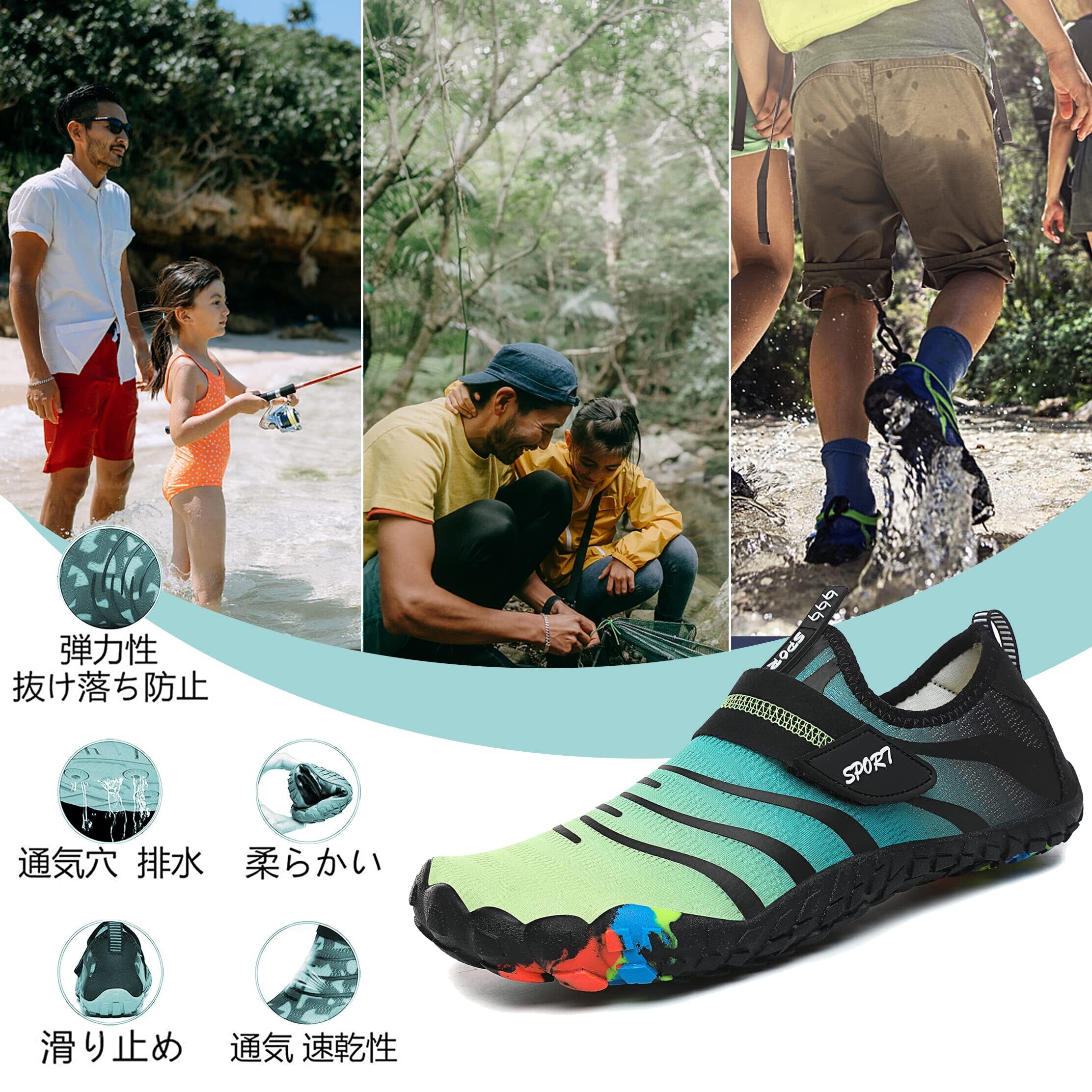この靴は手軽く、クッションがよい。足に柔らかく履き心地よい。速乾ウォーターシューズは通気よく、スマートなデザイン 軽くて持ちやすい:手軽いウォーターシューズは柔らかい靴の甲と柔軟の底でもっと履きやすい。靴下を履いているように柔らかく快適。