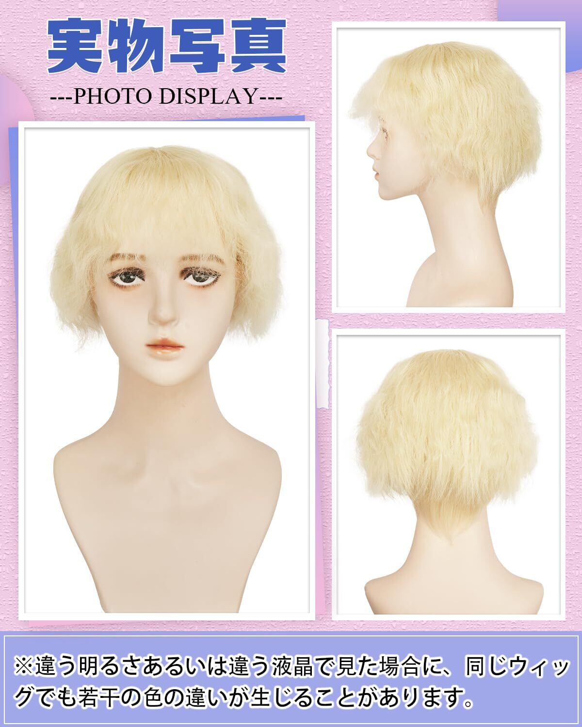 Sofeiyan ウィッグ メンズ 男装 ショート ウルフ フルウィッグ 男装ウィッグ ウルフカット かつら 普段使い 自然 耐熱 日常 原宿 地雷 人気 小顔ウィッグ コスプレ cosplay wig 男女兼用 ウィッグネット付(ライト亜麻ゴールド) | Bloomia