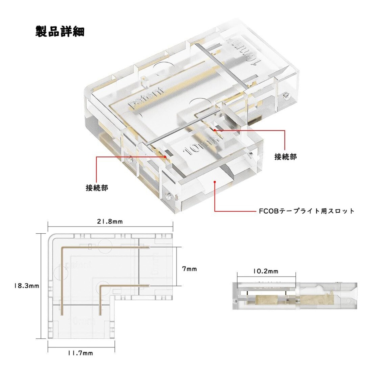 BTF-LIGHTING 2PIN コネクター FCOB COB 10mm幅 LEDコネクターキット 4個 透明なL型コネクター FCOB FOB PWM 単色 +V -V LEDテープライト用の透明なミドルカバーコネクター 半田不要 LEDテープライトに直接接続可能 | Bloomia