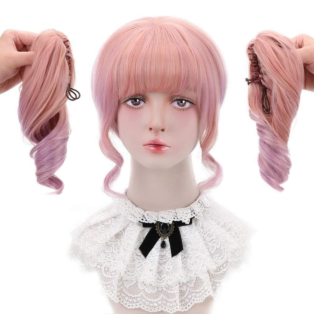 パッケージ:ウイッグ+ピンクポニーテール+パープルポニーテールのセット販売。ウイッグはショートボブスタイルで、ウイッグだけ着用しても可愛いです。ポニーテールをつけたらまた別のスタイルに変わります。