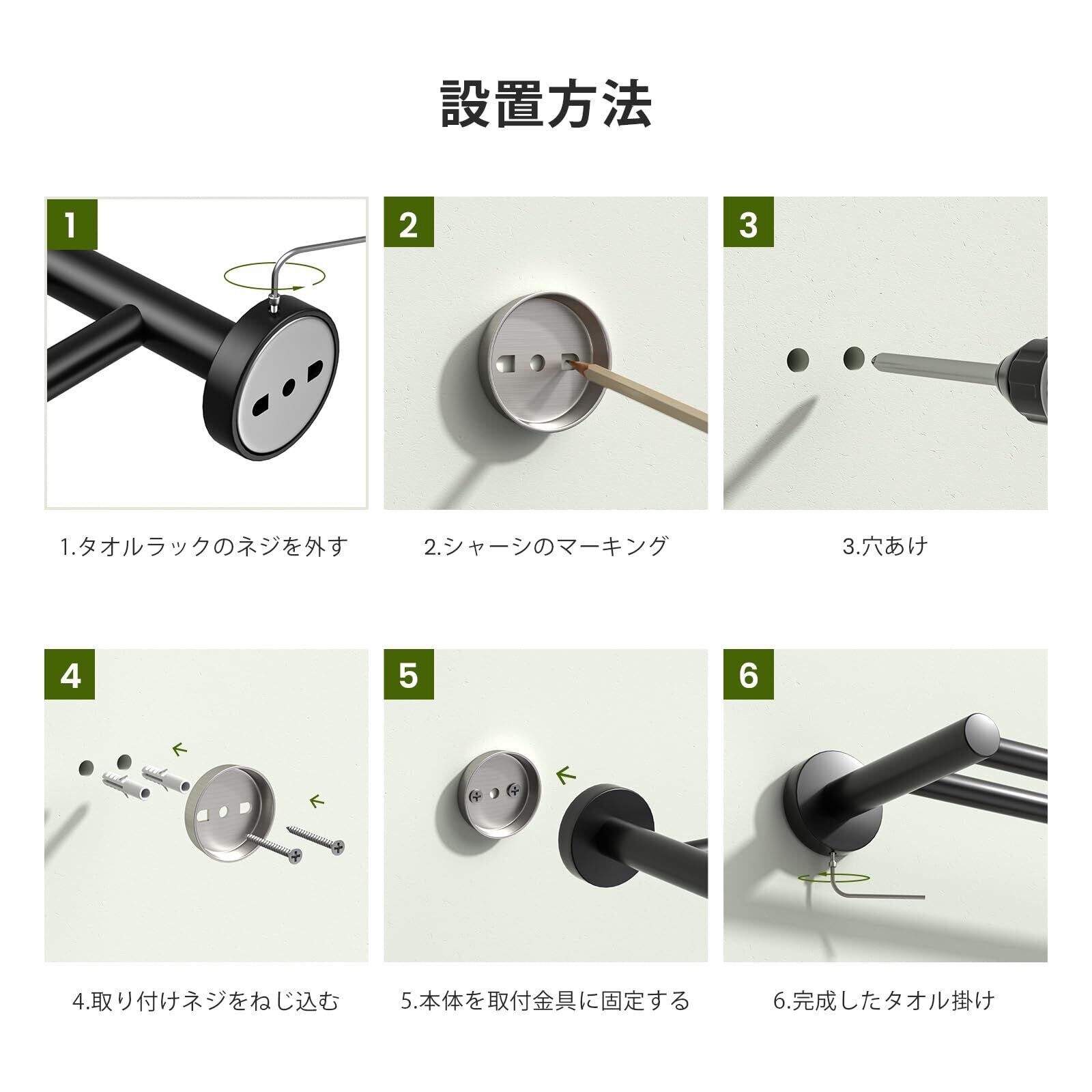 このタオルハンガーは40cmから60cmまで調節可能で、さまざまなスペースにフィットします。取り付けも簡単で、好きな場所に迅速に設置できるため、忙しい日常の中でも手軽にお使いいただけます。