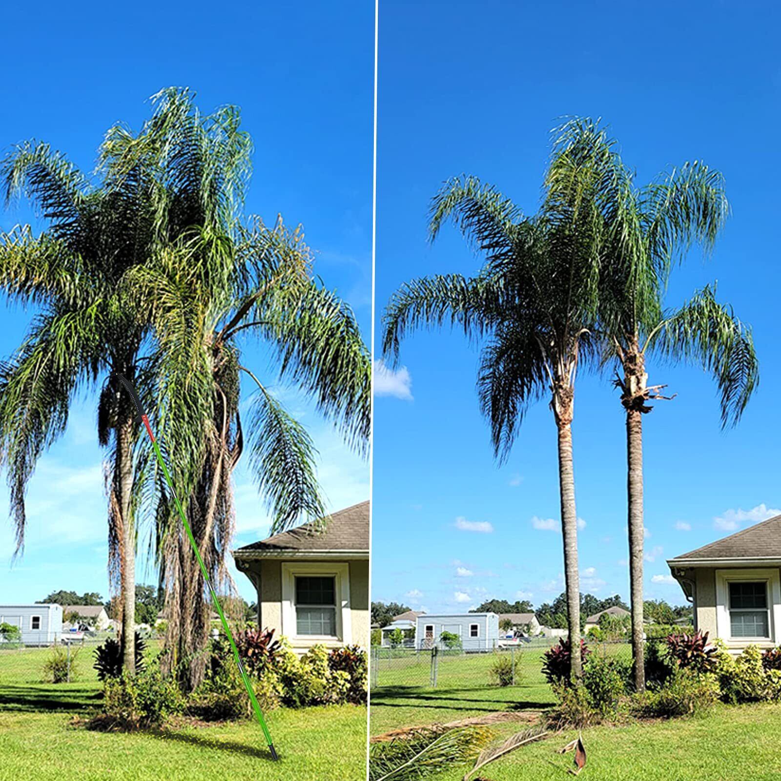 8メートルの枝切りポール:8メートルまで伸びる頑丈なツリートリミングシステムで、高い枝をすばやく簡単に切ることができます。木の高さに合わせてポールの長さを調整できます。