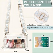 おしゃれ透明デザイン,バッグは一目瞭然な透明仕様で、バッグの中から欲しいものを見つけやすくなります。太い帯には独特の刺繡が施され、美しくおしゃれなアクセントになっています。持ち物の持ち運びに最適です 痛バッグ サイズは大体です26*16*8cm, ジッパー付きの主袋と小物入れ用の副袋があります,お金、カード、鍵、口紅、ガム、ティッシュ、小さな財布、メガネ、メイク、携帯電話などを入れることができます,使いやすいです。すべての重要なものを収納するのに十分なスペースを提供します ワンショルダーにも斜め掛けにも使える2 wayクリアバッグです, 重さ300gです, ショルダーストラップが調節できるので、持ち運びにも便利です. スタジアム承認クリアバッグので、国内外のセキュリティ検査を迅速かつ簡単に通過することもできます。 透明度の高いPVC材質、耐摩耗性、防水性、耐久性があります。雨の日に水に濡れても安心します。プールや海に行くときも活躍します。汚れてもさっと拭くだけ簡単にきれいになります。 多用途で,あらゆる場面で使えます,このバッグはコンサート、スポーツイベントだけでなく、旅行、アウトドア、ビーチ、ショッピング、デート、学校、仕事などにも適しています。