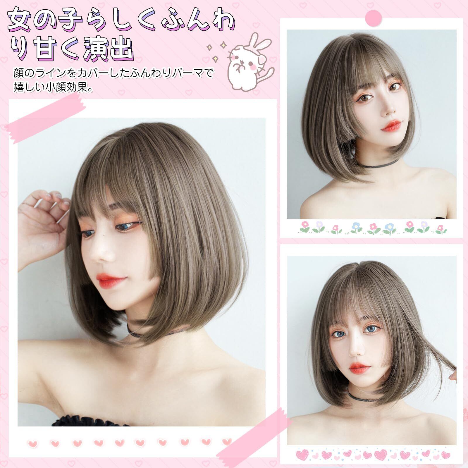 ウィッグ ボブ 姫カット ぱっつん前髪 ショート ストレート 姫髪 フルウィッグ 耐熱 小顔 軽量 原宿ロリータ 女性用 かつら ピンクネット付き (樺茶色)