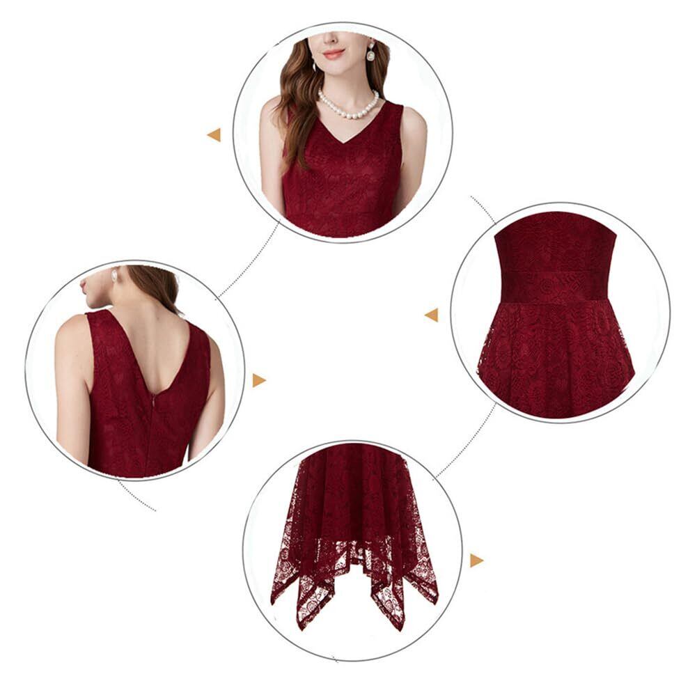 [KADE MEYAIB] レディース カクテルドレス フォーマル ドレス レース 女の子 Vネック 膝下 不規則 Aライン ワンピー フレア ハイウエスト 大きいサイズ 着痩せ 日常 結婚式 披露宴 演奏会 デート パーティー 無地 | Bloomia