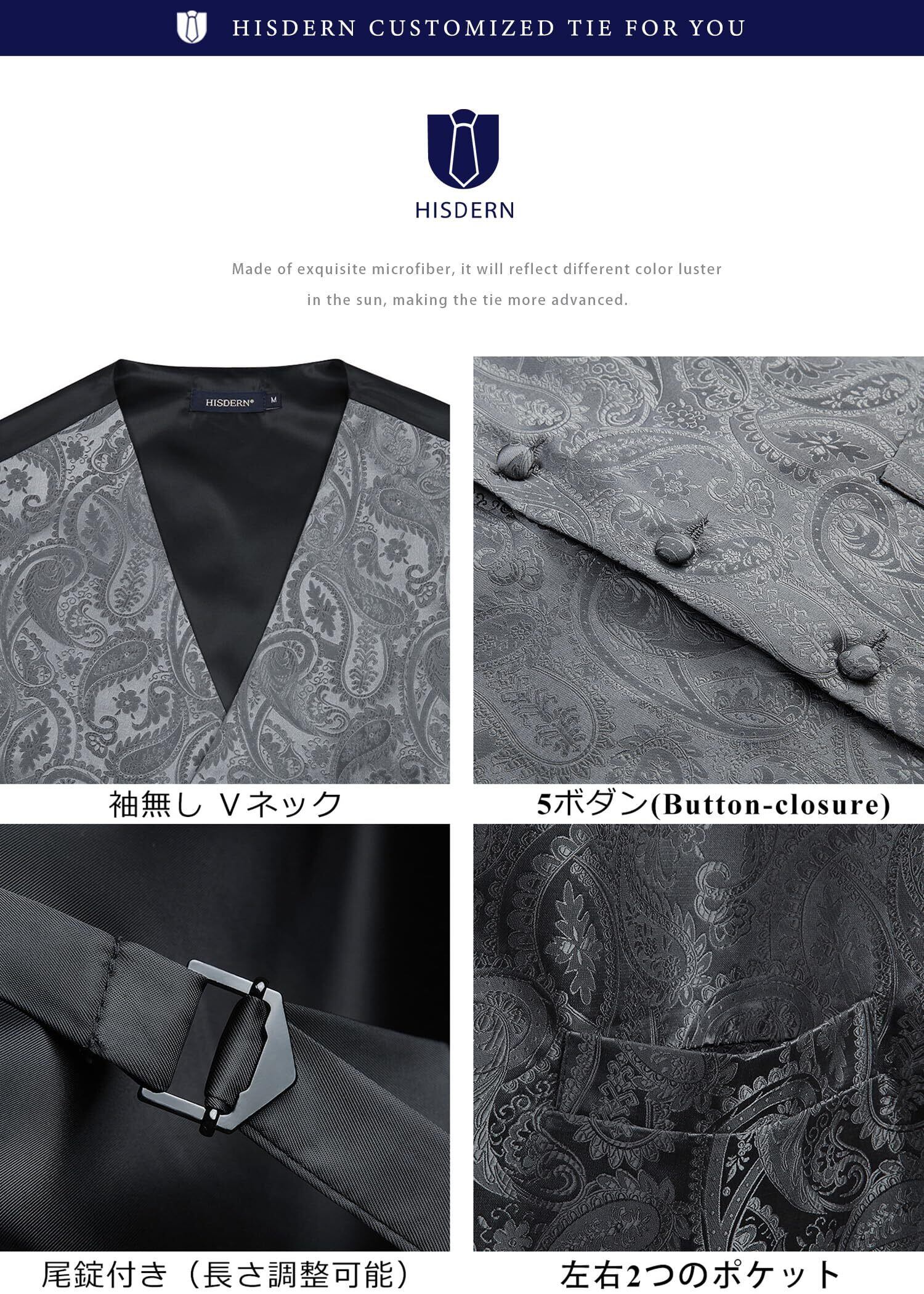 [HISDERN] V3-01 ペイズリー スーツ ベスト メンズ ネクタイ ポケットチーフ 3点 セット フォーマル 結婚式 ベスト 大きいサイズ フィット 2ポケット 紳士 礼服 大きいサイズ | Bloomia
