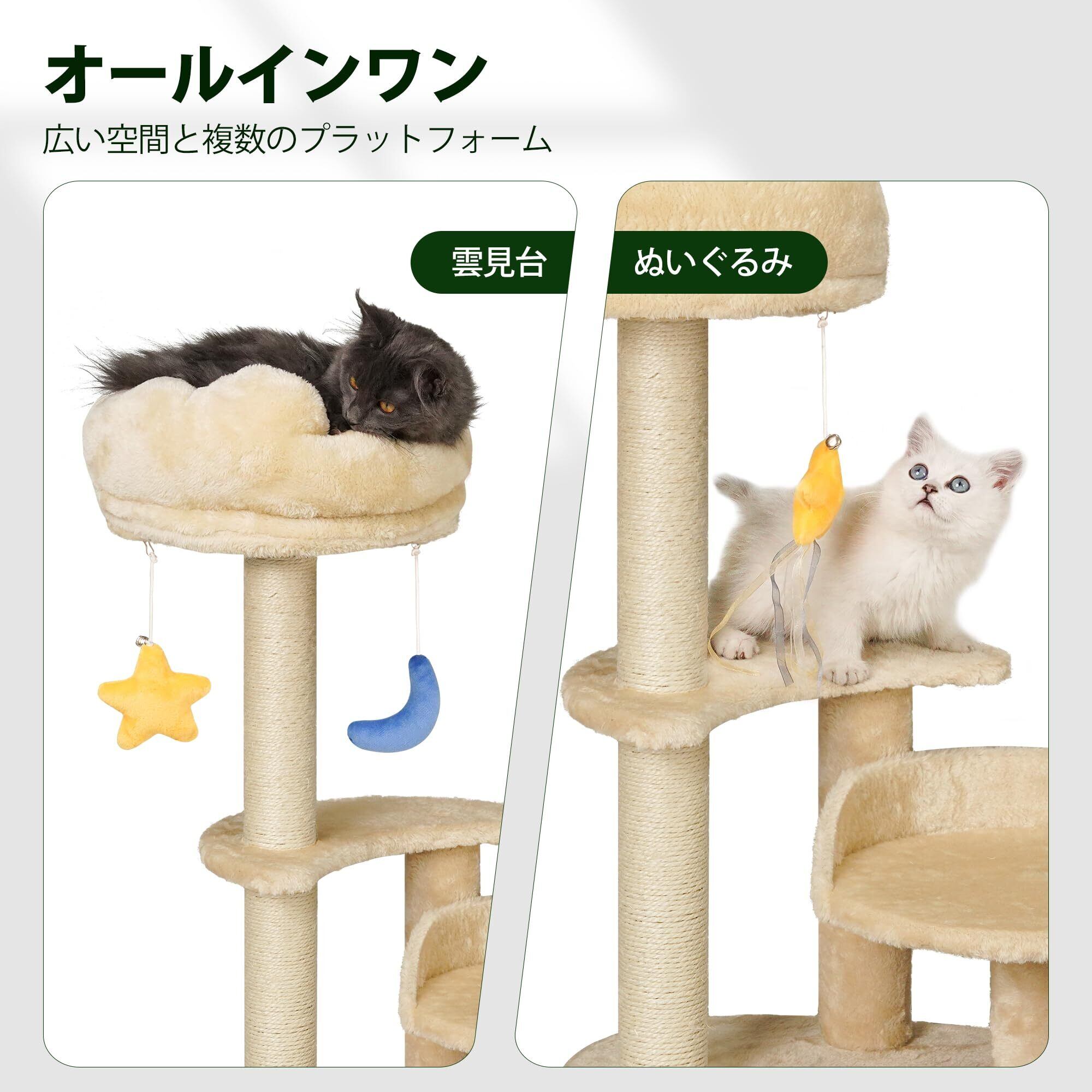 高さ62cmのこのキャットタワーは、転倒の心配も少なく、仔猫にとって最適な遊び場です。しっかりした構造で安心して遊ぶことができ、成長に合わせて長く愛用できるアイテムです。