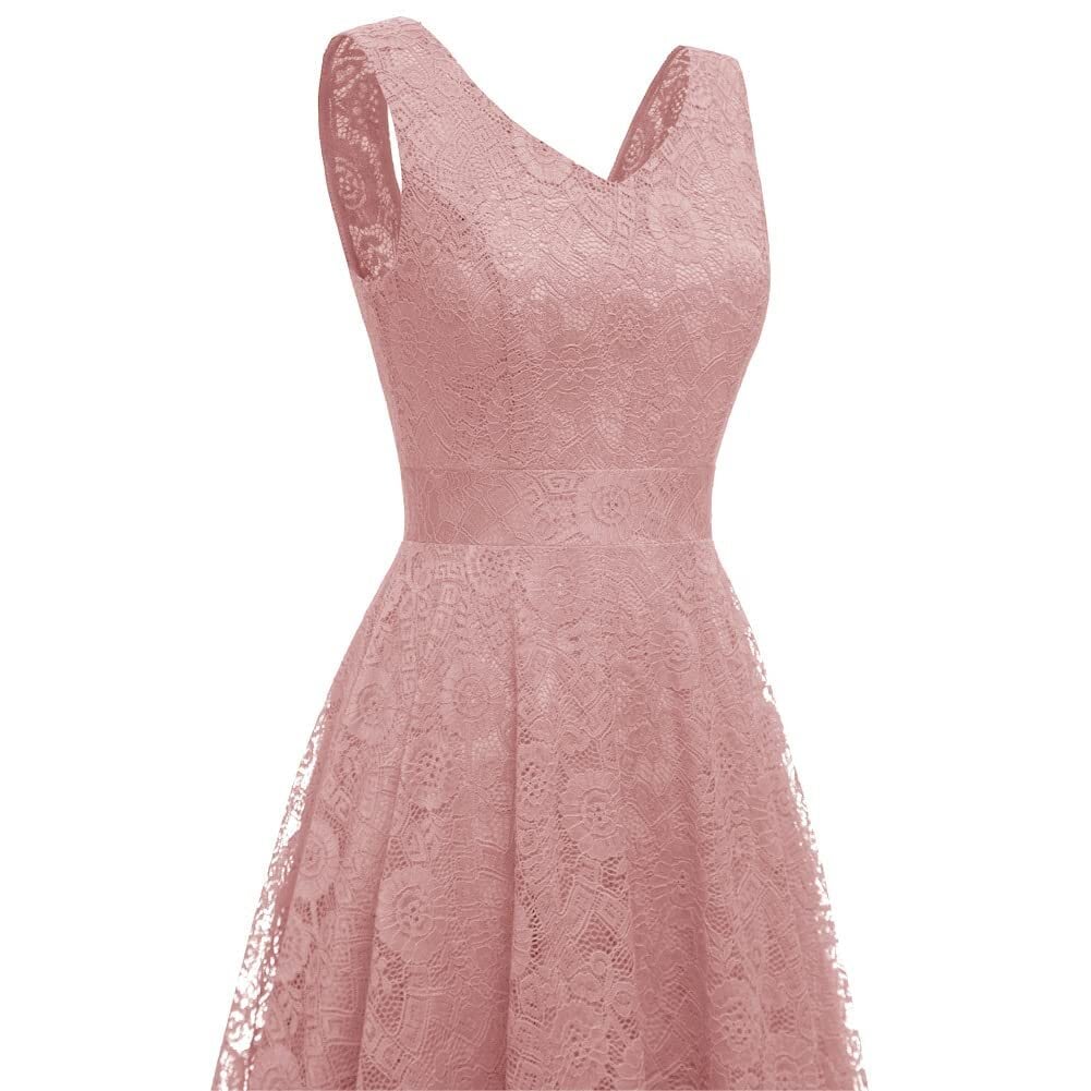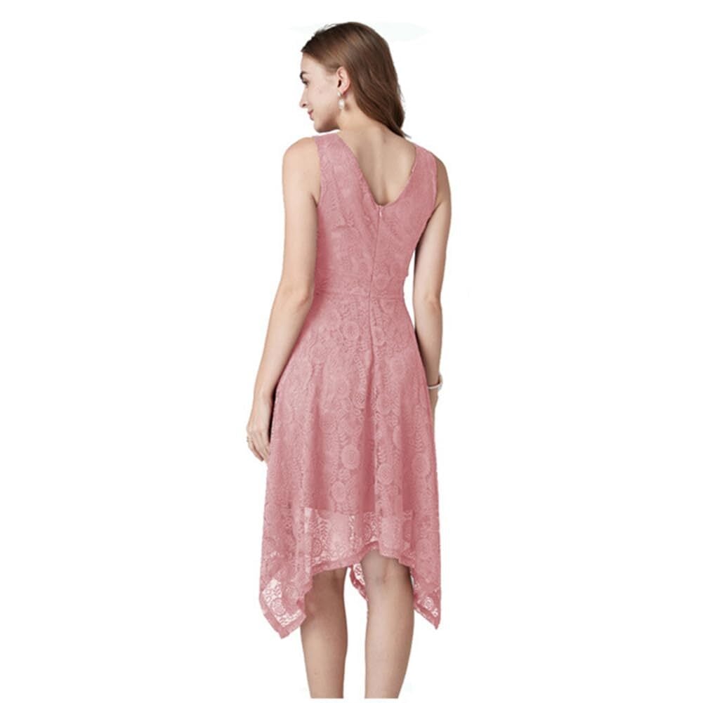 KADE MEYAIB レディース カクテルドレス フォーマル ドレス レース 女の子 Vネック 膝下 不規則 Aライン ワンピー フレア ハイウエスト 大きいサイズ 着痩せ 日常 結婚式 披露宴 演奏会 デート パーティー 無地