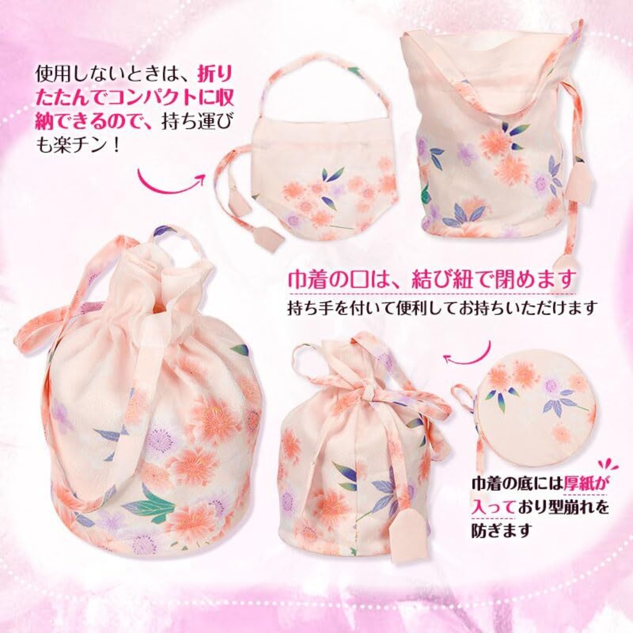 巾着袋 浴衣 バッグ 巾着ポーチ 小 袴 巾着 巾着バッグ 着物 和装 レディース 和柄 浴衣バッグ 七五三 卒業式 成人式 和風 小物 9カラー (A ピンク)