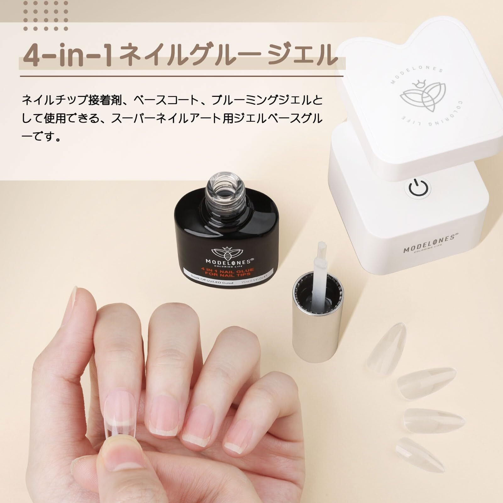 Modelones ネイルグルー ネイルチップ接着剤 15ml 4-IN-1 ネイルチップ用グルー&ベースコート&補強ジェル&スリップソリューション ジェルネイルポリッシュ ネイルジェル 透け感 ジェルネイル | Bloomia