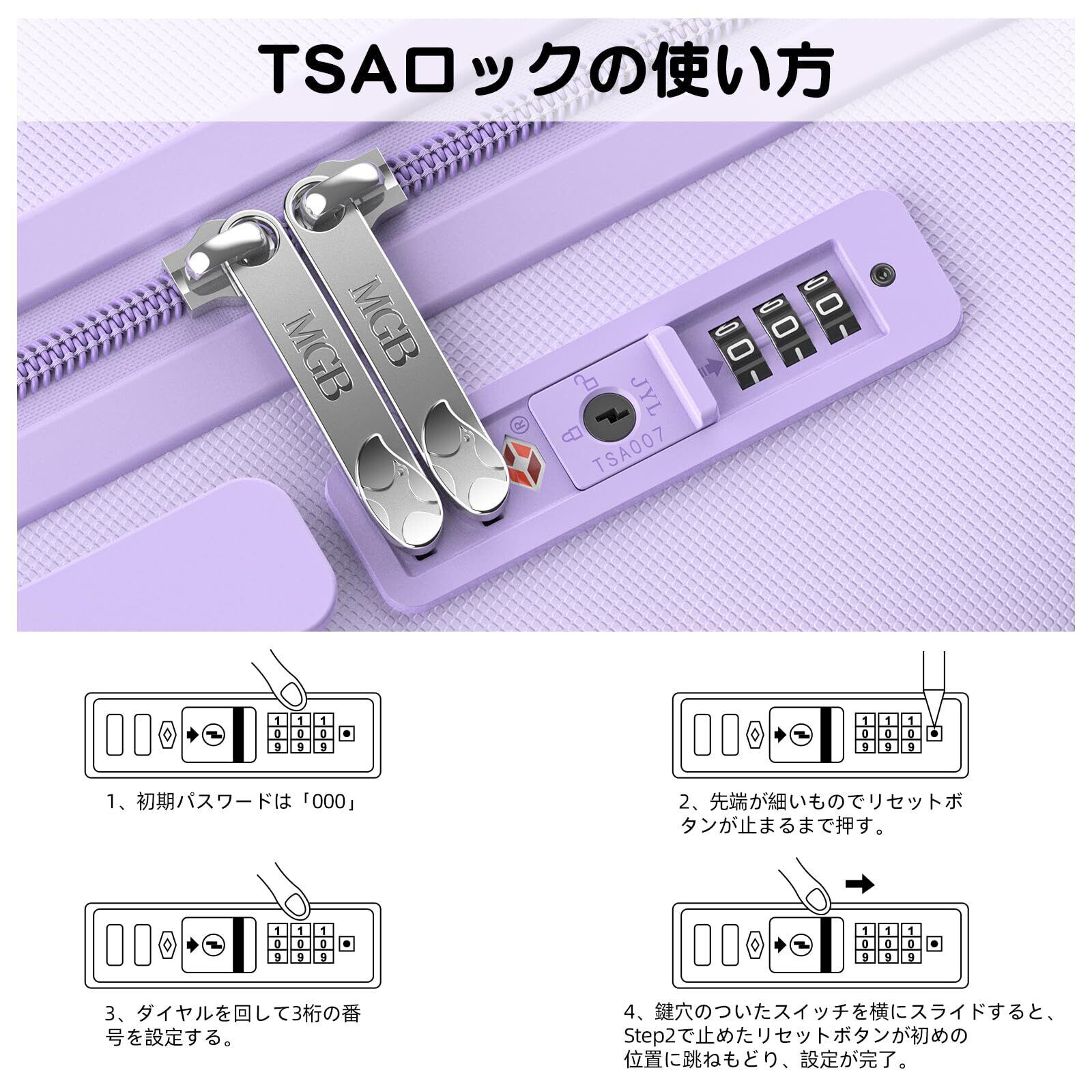 [MGOB] キャリーケース スーツケース 機内持ち込み キャリーバッグ 可愛い 超軽量 フック機能 耐衝撃 静音 ダブルキャスター TSAロック ファスナータイプ 旅行 ビジネス 出張(バイオレット, Mサイズ 80L/5~10泊向き)