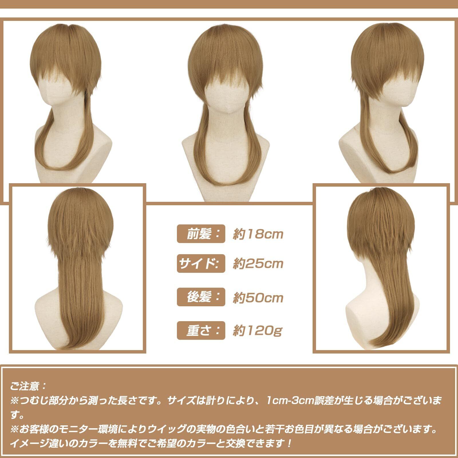 商品情報前髪:約18cm;サイド:約25cm;後髪(ウルフ部分を含む):約50cm;後髪(ウルフ部分を含まない):約25cm;重さ:約120g(つむじから自然な状態で測定。計りにより、1cm-3cm誤差が生じる場合がございます。)アジャスター付きなので、個々の頭の大きさに合わせて段階調節することができます(ウィッグは後頭部の内側にサイズを調整できるアジャスターが着いています。頭周り53〜58㎝に調整することも可能です。)。※(モデル画像は形を整えています、弊店が販売しているウィッグのサイズは長いので、取り付ける際、自分に似合うように長さを切ることもできます。)