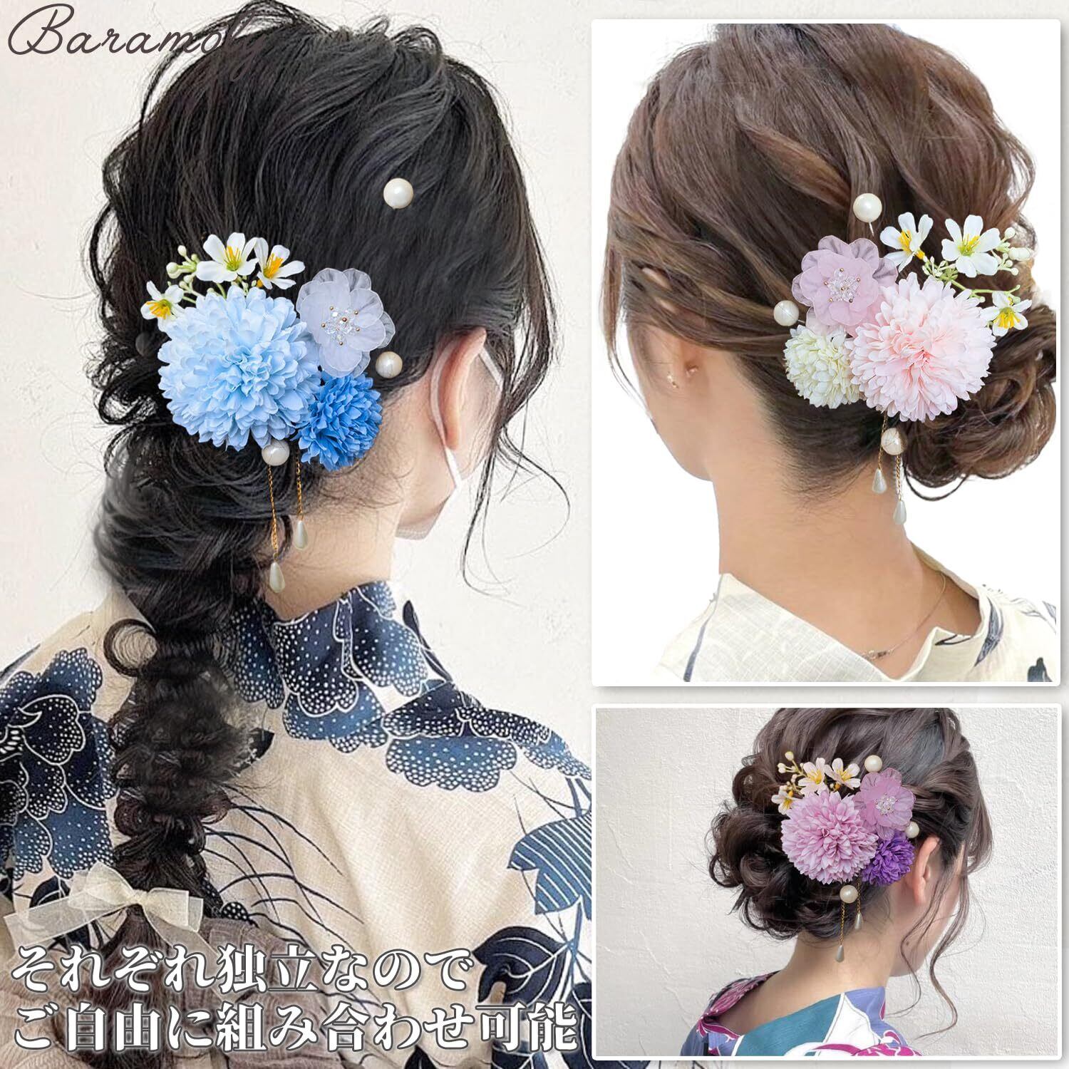 【Baramoly】 髪飾り 浴衣 和装 着物 デイジー プリザーブドフラワー 造花 花飾り 祭り 花火大会 成人式 結婚式 卒業式 七五三 ウエディング 謝恩会 かわいい 髪留め