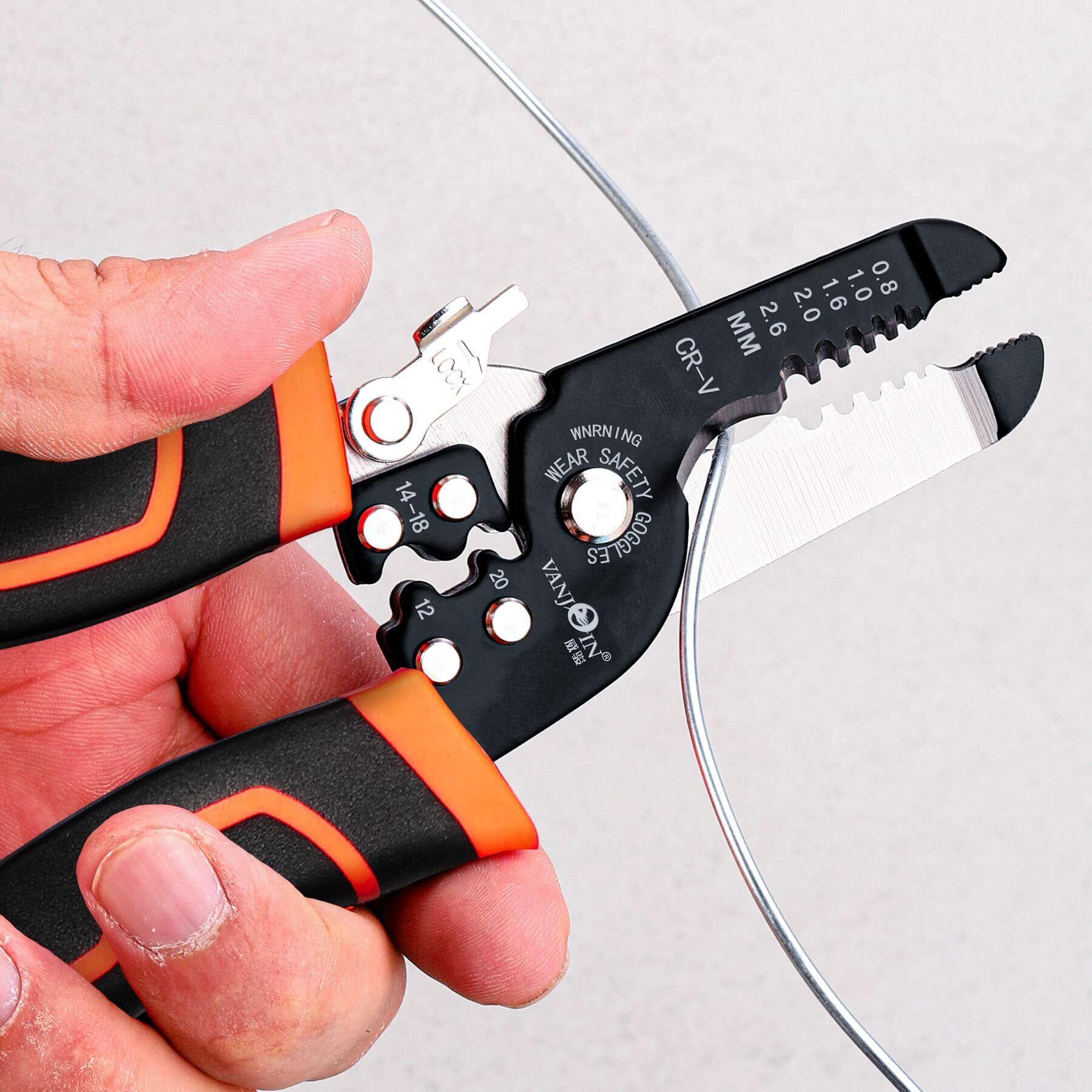 圧着式ワイヤーストリッパー ハンドツール 0.8-2.6mm(20-10AWG)用 銅線ストリッパー プロ仕様のノンスリップグリップと耐久性のあるスチール製ジョーを備えた多機能ワイヤーストリッパー (圧着式ワイヤーストリッパー)