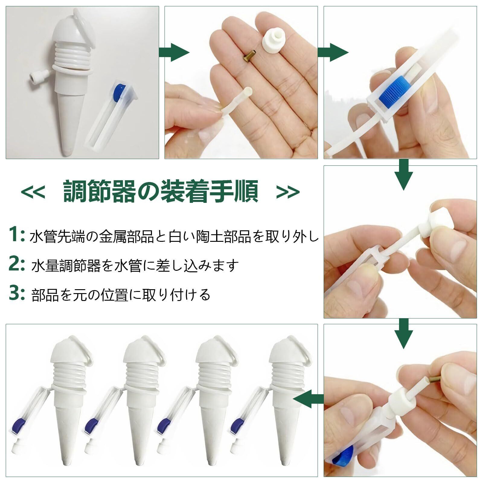 【コントロール可能】出水量を調節可能な調節器を付属しています。水の出る速度を簡単に調節できます。一週間以上に家にいなくでも植物の枯れ防ぐことができます。ご注意:出水の速度は水容器の位置に関わります。水容器が鉢植えよりも高いほど出水速度が速くなります。