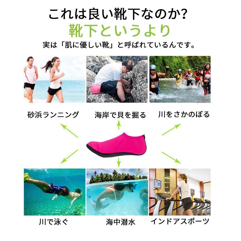 「水中・陸上どちらでも使えるマルチ仕様!」シュノーケリングやビーチサンダルとしてはもちろん、雨の日の外出や軽いハイキングにも最適です。汎用性の高いこのマリンシューズで、あなたのアクティブライフをサポートします。