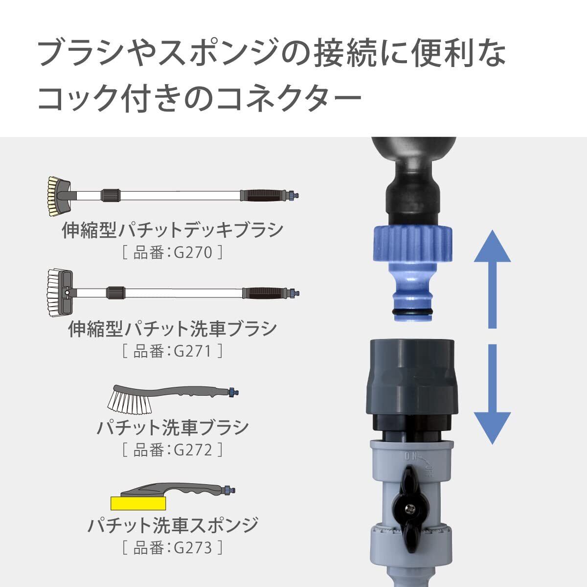 洗車ブラシや洗車スポンジの接続に便利なコック付きのコネクターです。